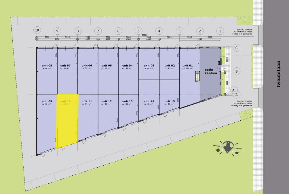 Aan de Oostzijde van het bedrijventerrein 'Vroomshoop-Oost' is recent een nieuw bedrijfsverzamelgebouw gerealiseerd op een kavel aan de Twentelaan. Het geheel bestaat uit 16 bedrijfsunits, waarvan één bedrijfsunit (unit 10) met een totale oppervlakte van 63 m² te koop wordt aangeboden!