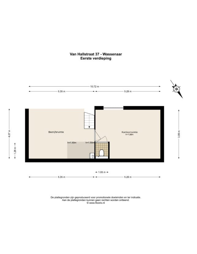 Ideaal gesitueerde bedrijfsruimte van totaal 277,3 m² v.v.o. (begane grond 238,4 m² en entresol/ verdieping 38,9 m²) op kleinschalig industrieterrein "Van Hallstraat" in de buurt ‘Zijlwatering en haven’ te Wassenaar.