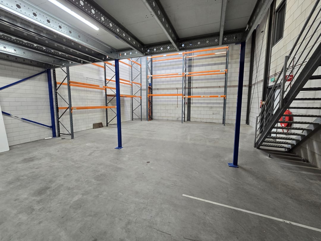 - Lichtstraten, overheaddeuren, krachtstroom, betonvloer, heater, toilet en pantry