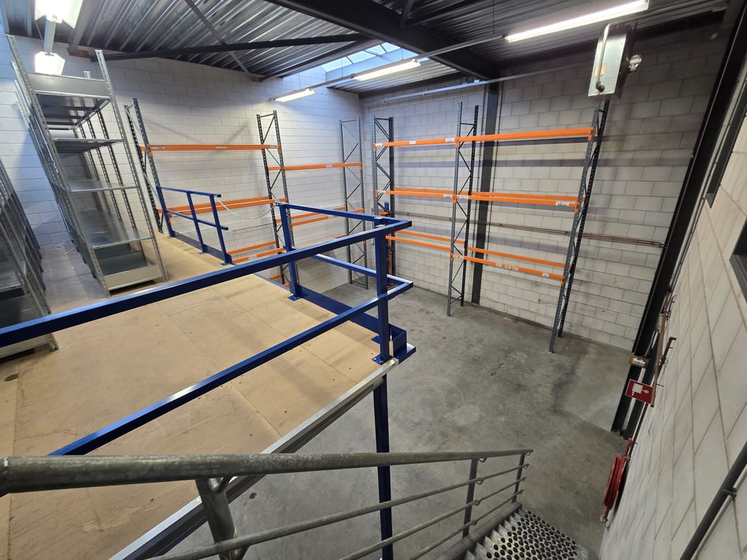 - Degelijke entresolvloer met stalen trap (demontabel indien gewenst)