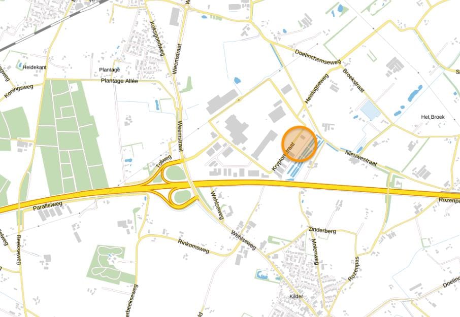 Het bedrijventerrein waarop het object is gelegen ligt ten westen van de stad Doetinchem en ten zuiden van het dorp Wehl aan de snelweg A18 met aansluiting op de A12 (Arnhem-Oberhausen) of richting Enschede via de N18 Twenteroute. De locatie is uitstekend bereikbaar vanaf de snelweg A18 middels auto of vrachtvervoer, op een paar autominuten van de op- en afrit. Het centrum van Doetinchem is binnen 10 autominuten bereikbaar.