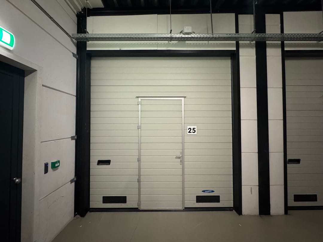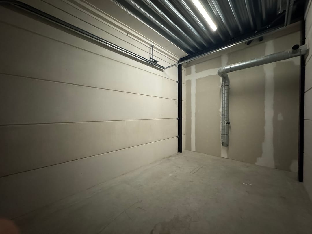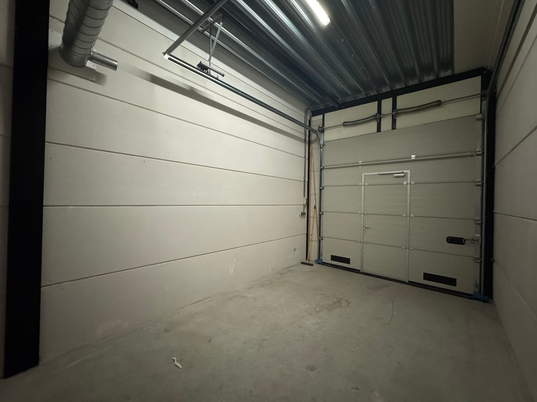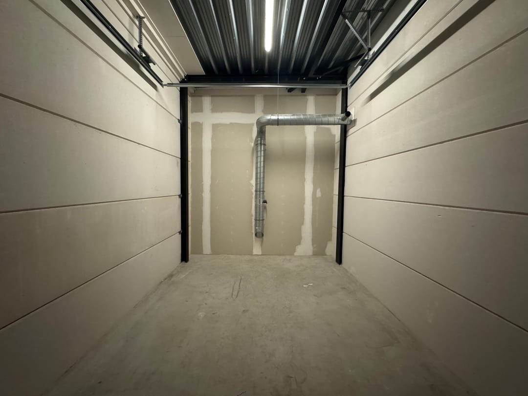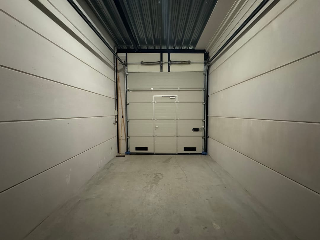 De garagebox is voorzien van een overheaddeur van ca. 3,2 meter hoog met doorloopdeur en mechanische ventilatie en heeft een vrije hoogte van ca. 4 meter.