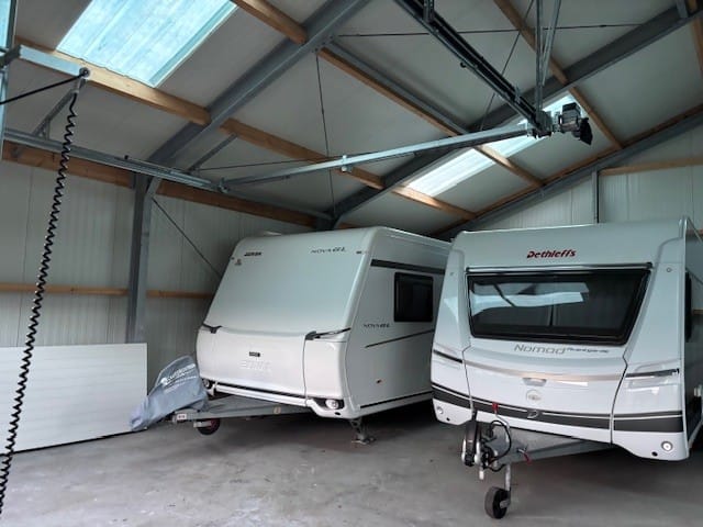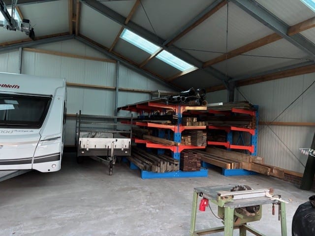 De loods bevindt zicht op afgesloten terrein die u deelt met een viertal ondernemers.