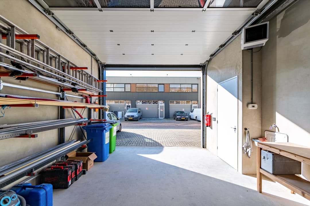 - Lichtstraten, overheaddeuren, betonvloer, toilet, pantry, airconditioning en te openen ramen
