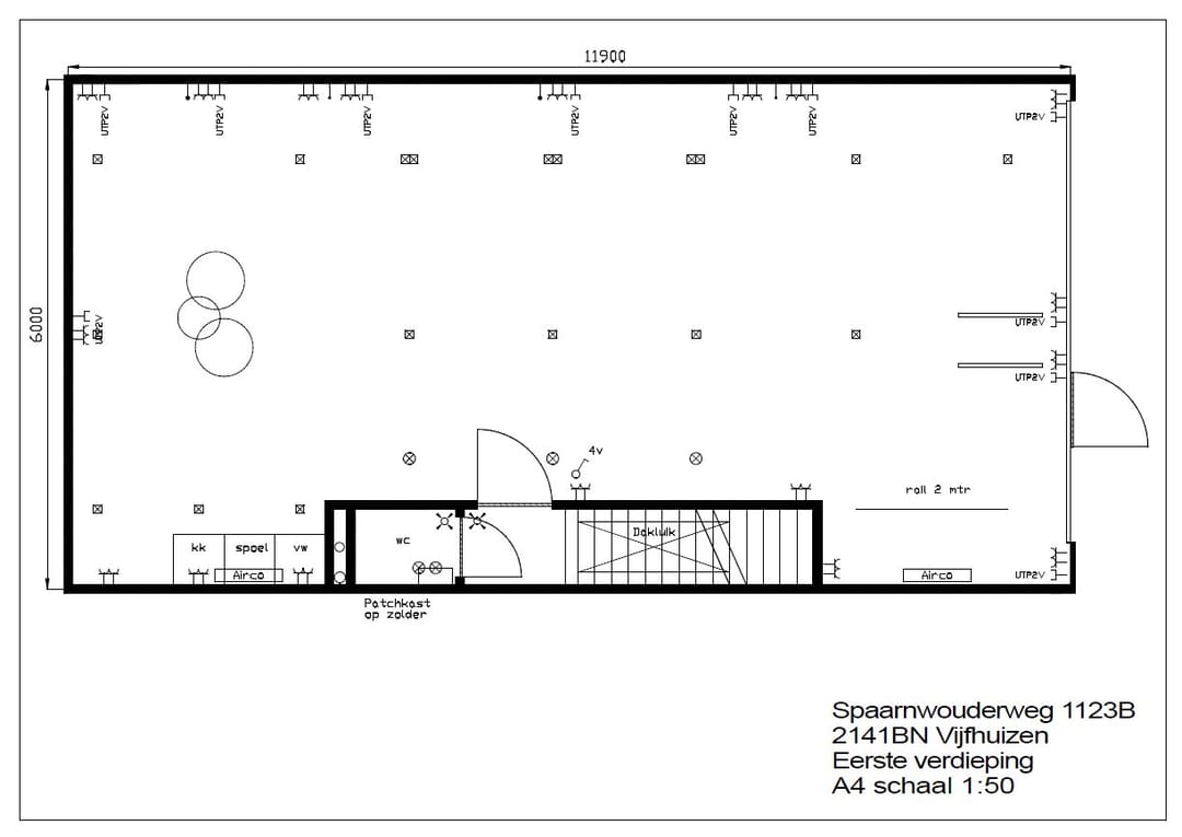 - vrije hoogte op de begane grond van ca. 3,8 m;