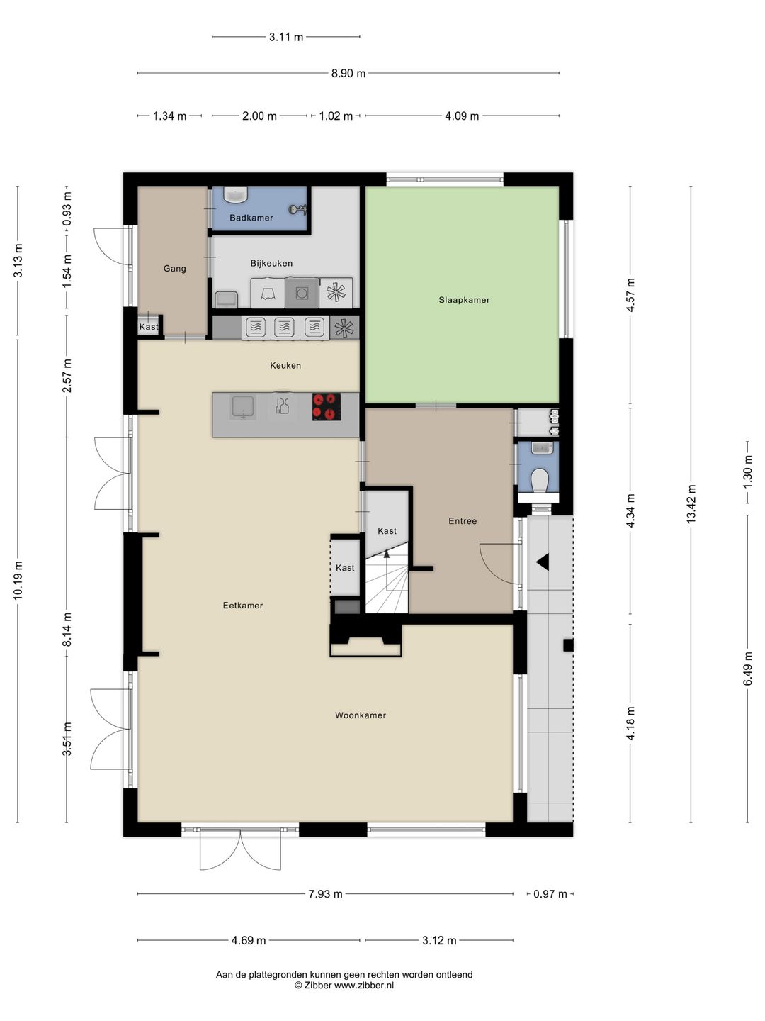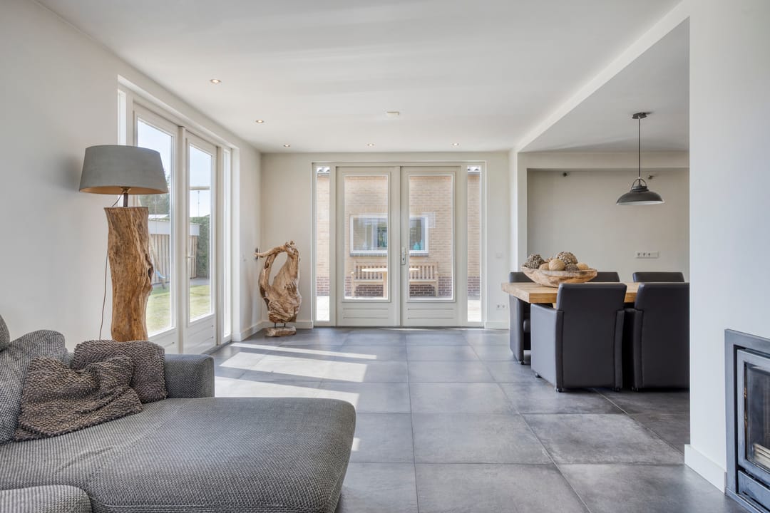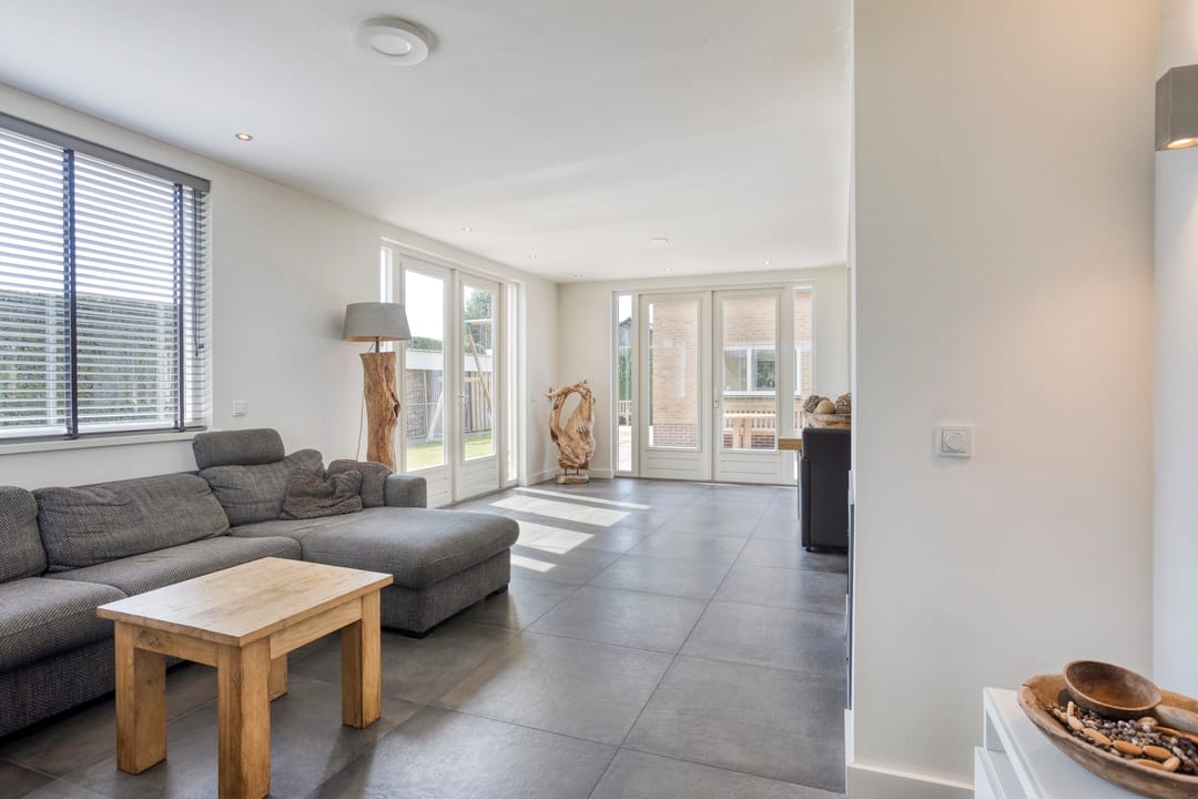 - Indeling woonhuis van Rijckevorselweg 2: L-vormige woonkamer met open keuken