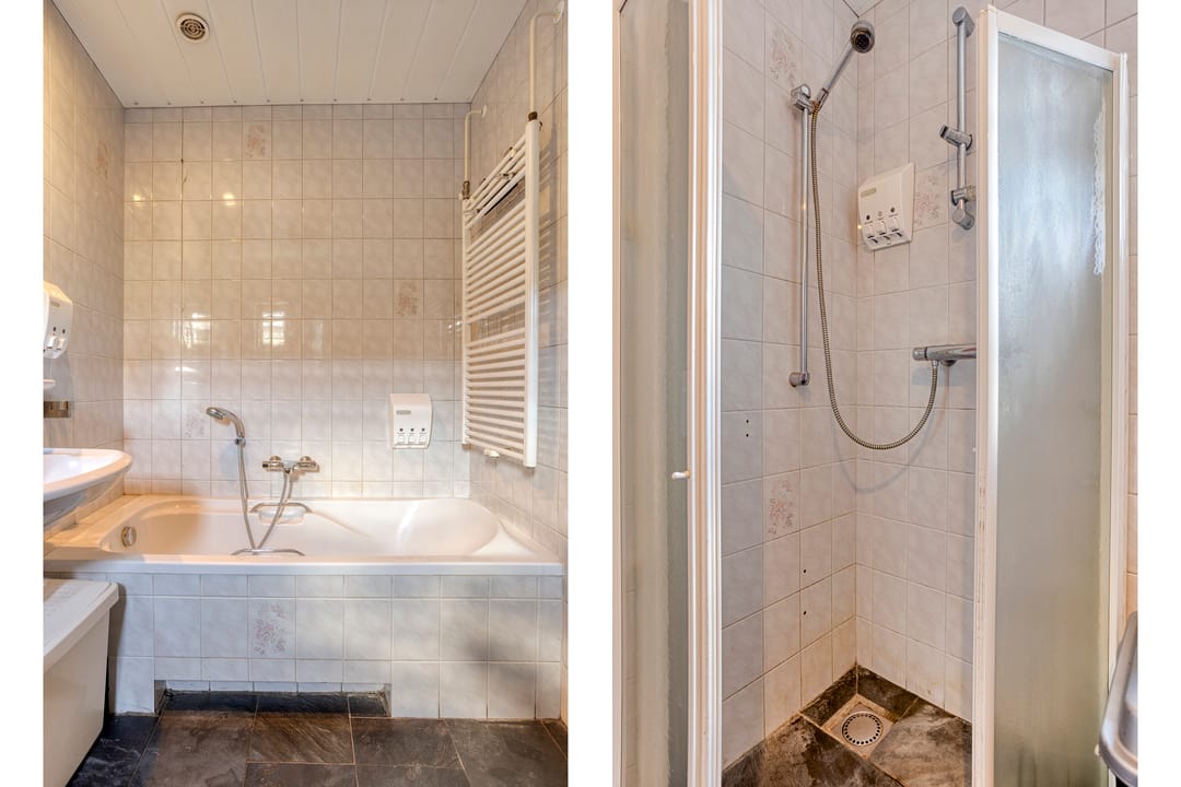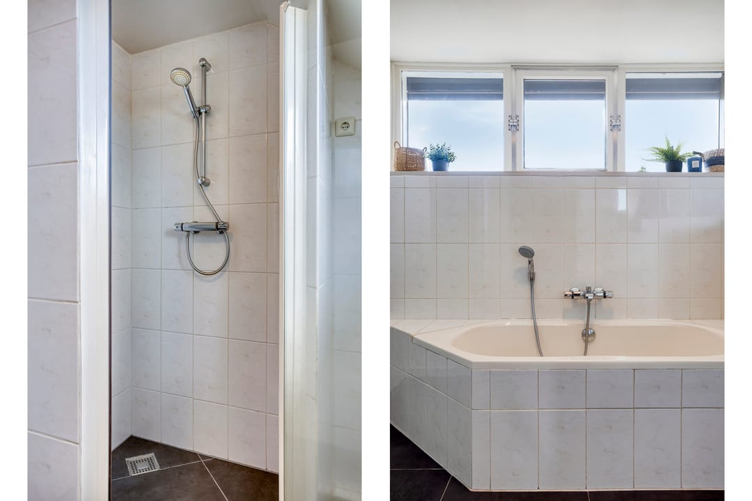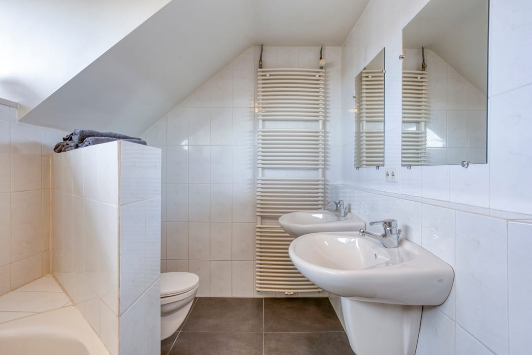- Tweede badkamer met ligbad, toilet, inloopdouche en dubbele wastafel