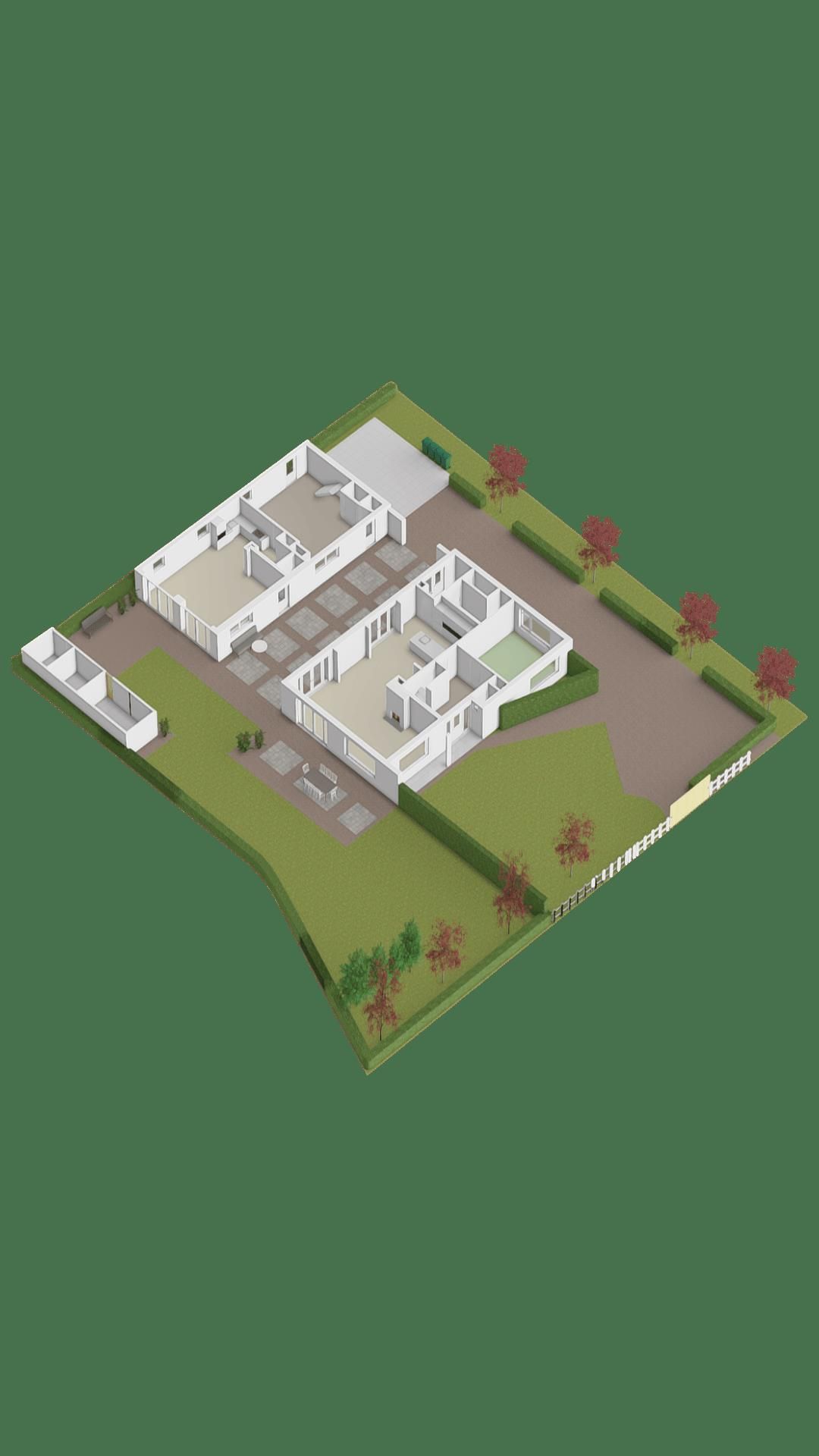 - Vrijstaande woning (nr 2), vrijstaande mantelzorgwoning (nr 2A) met bijgebouwen