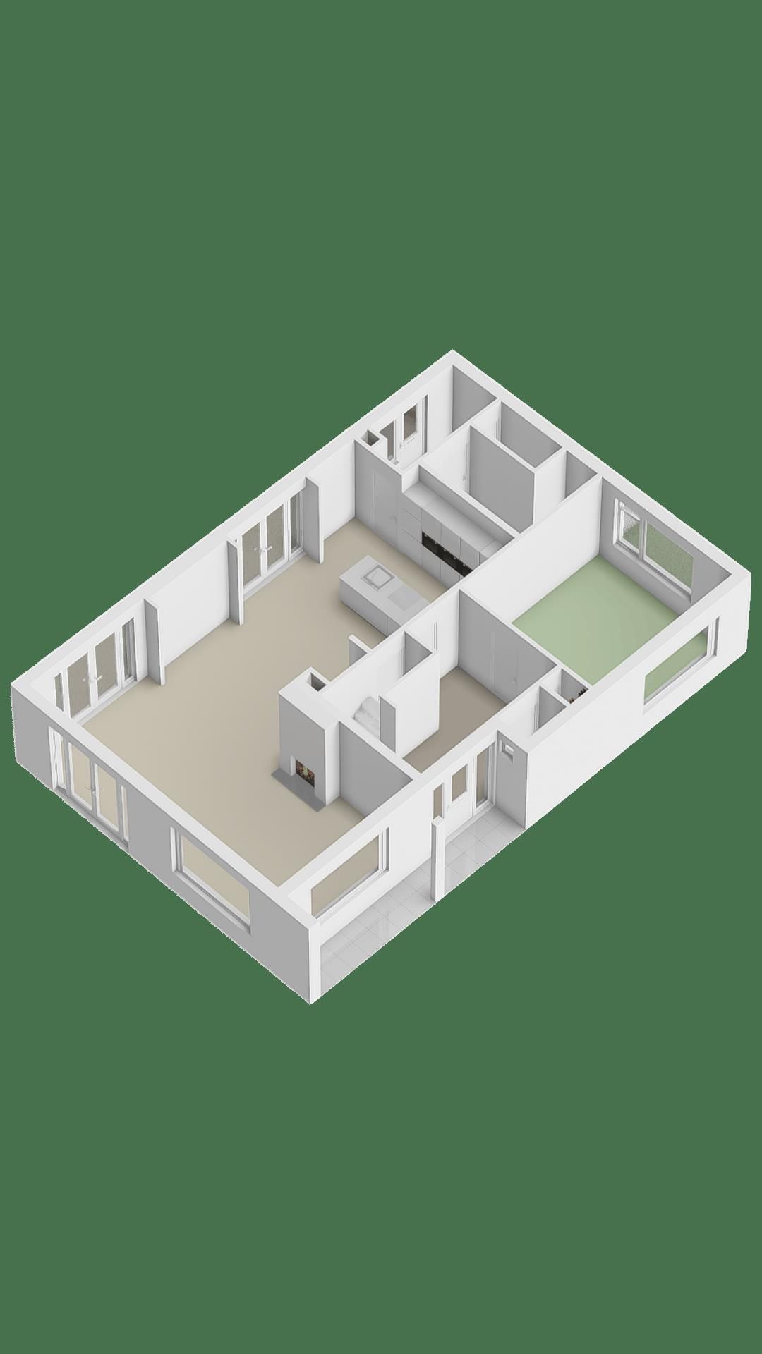 - Indeling mantelzorgwoning van Rijckevorselweg 2A: Woonkamer met zit- en eetgedeelte