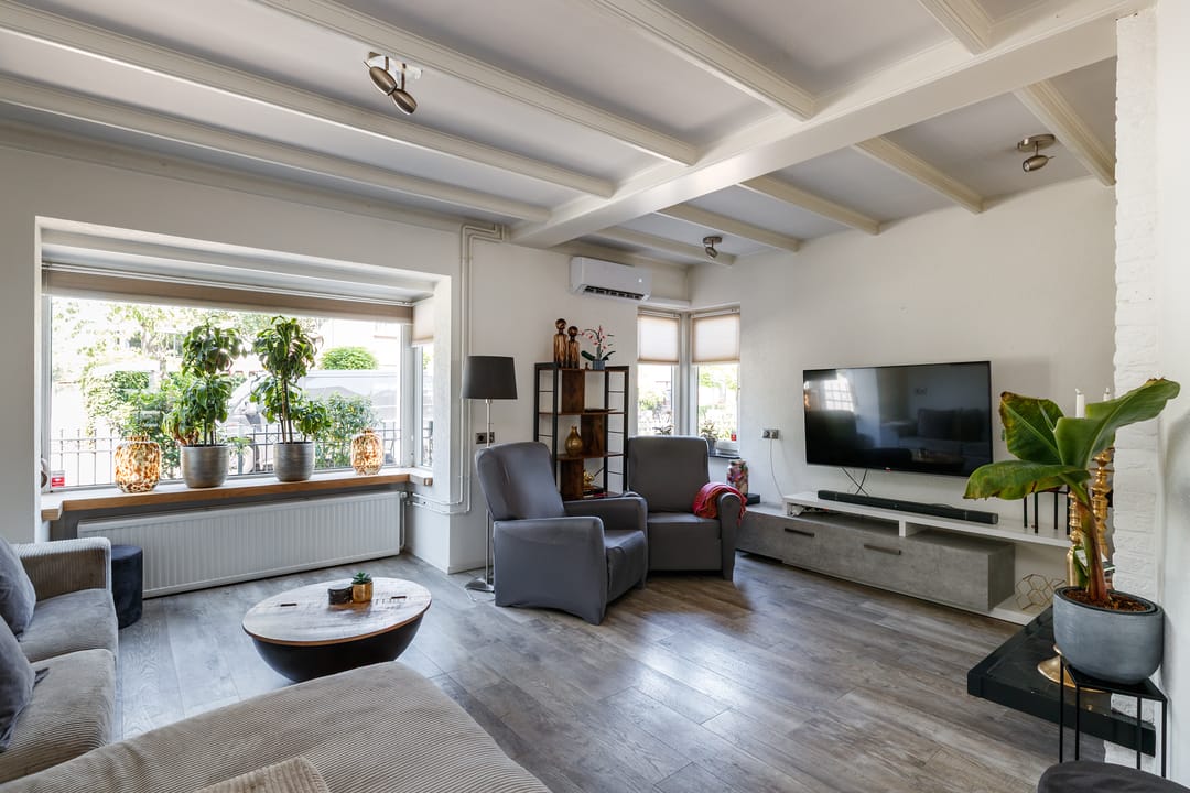 Stap je binnen, dan trekt de elegante ronde trap meteen de aandacht – een eyecatcher die van de hal tot de zolder reikt. Aan de achterzijde vind je de moderne luxe keuken met diverse inbouwapparaten en een water ontkalker.
