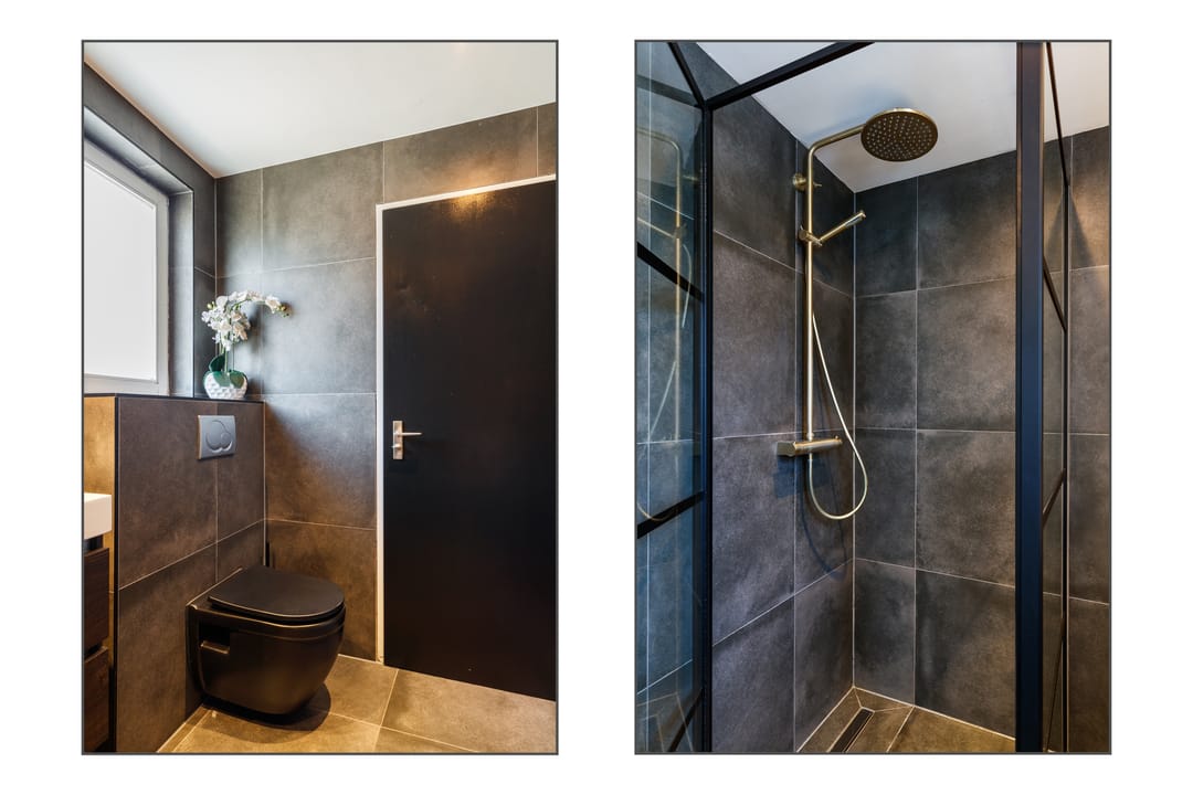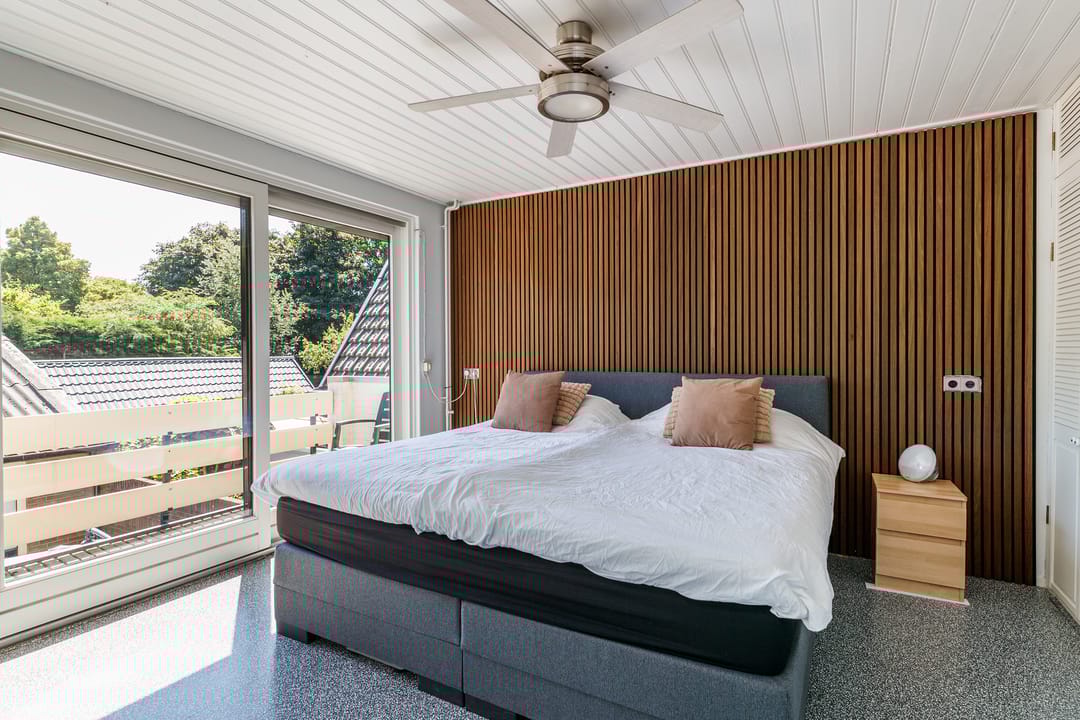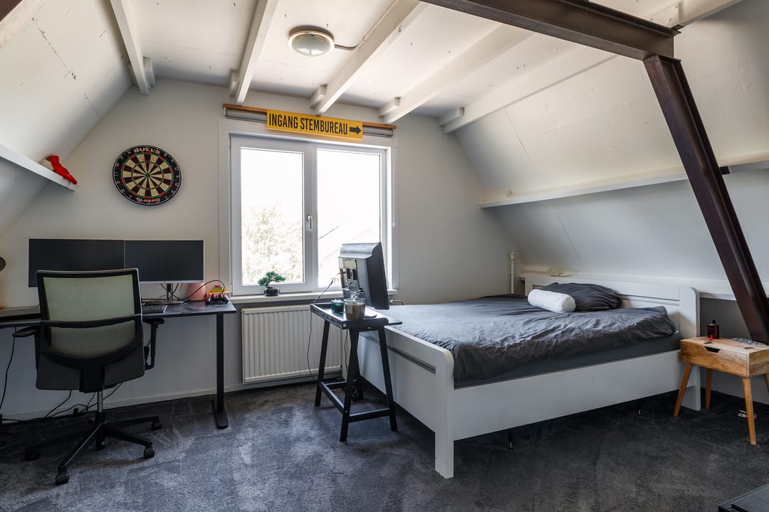 Op de eerste verdieping kom je op een riante en lichte overloop die toegang geeft tot drie slaapkamers, waarvan twee met vaste kasten en één met schuifpui naar het balkon. Ook vind je hier een moderne badkamer met inloopdouche, tweede toilet en wastafel, plus een aparte wasruimte. De tweede verdieping telt nog eens twee volwaardige slaapkamers – dat brengt het totaal op vijf! Alle slaapkamers op de bovenverdieping hebben kunststof kozijnen.