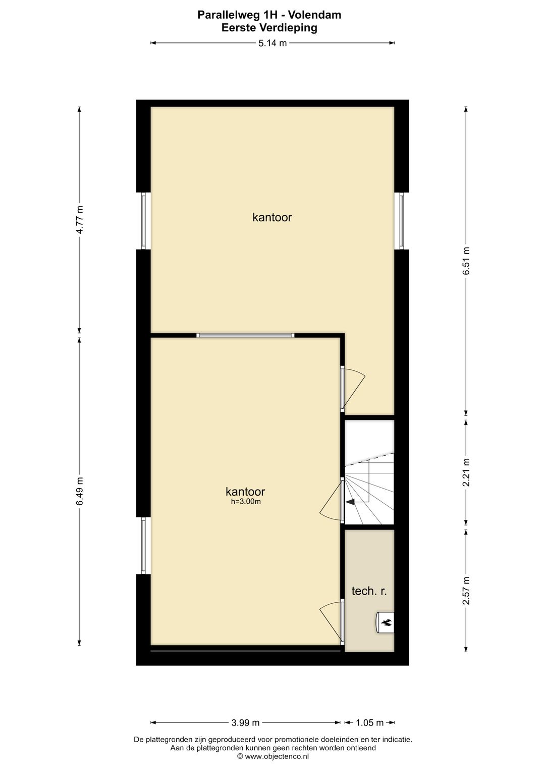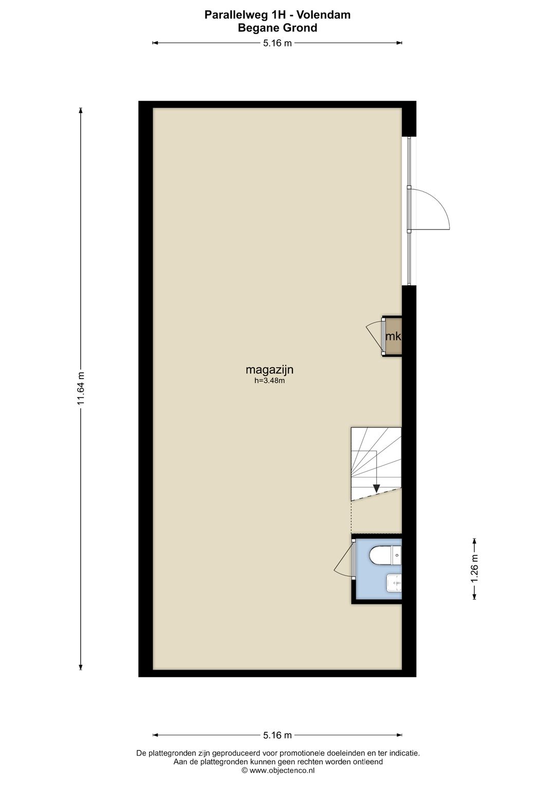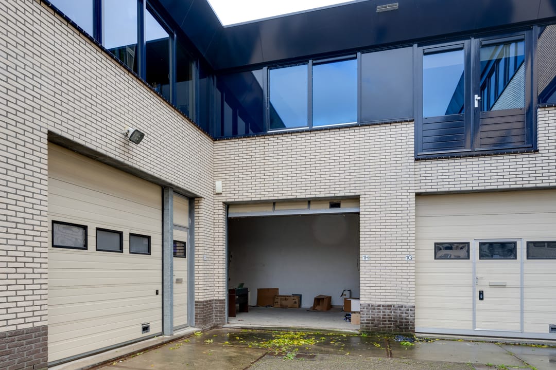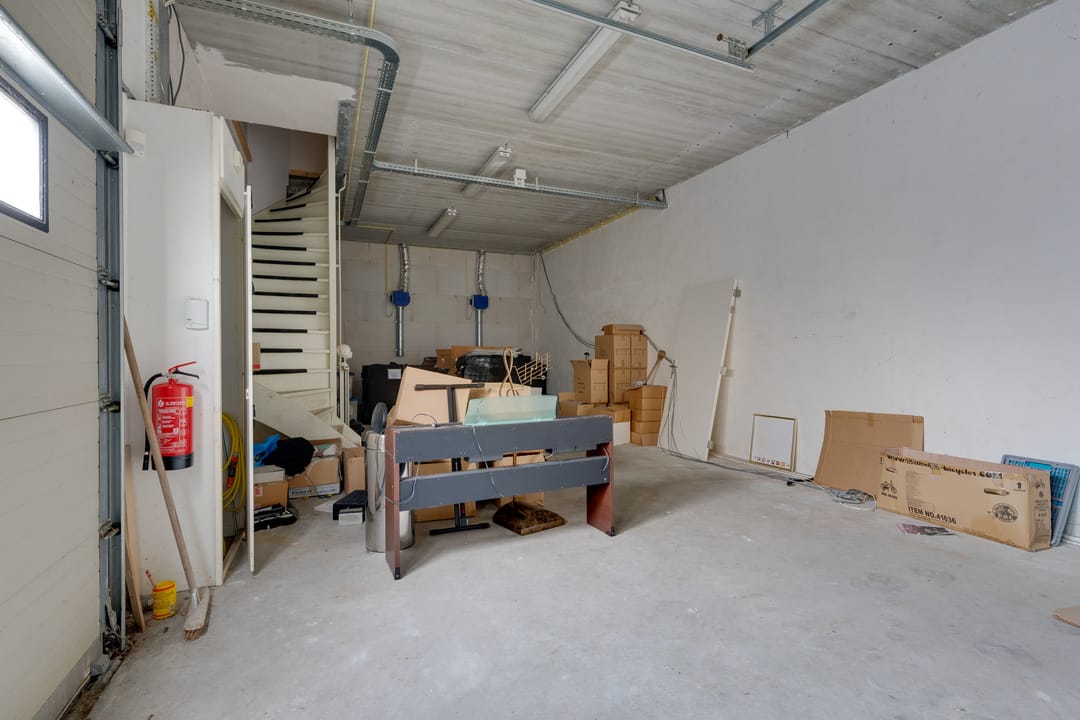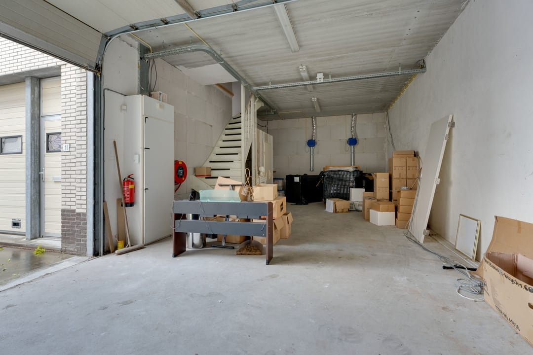 Op de begane grond een bedrijfsruimte met toilet en trap naar de 1e verdieping. De bedrijfsruimte is voorzien van een overheaddeur met loopdeur.
