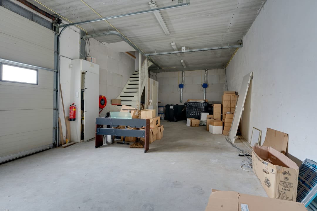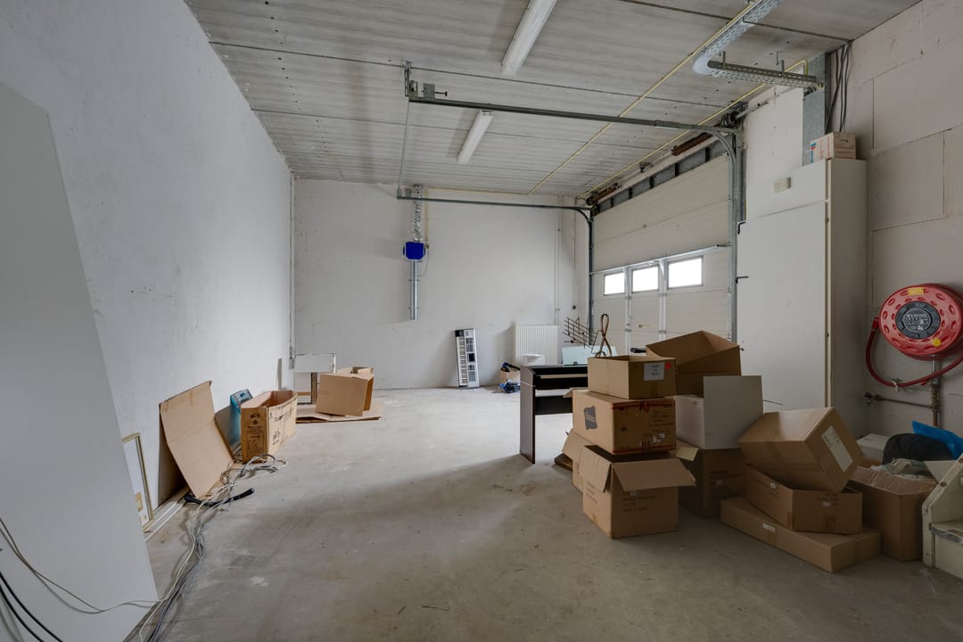 - Overheaddeuren, betonvloer, toilet en te openen ramen