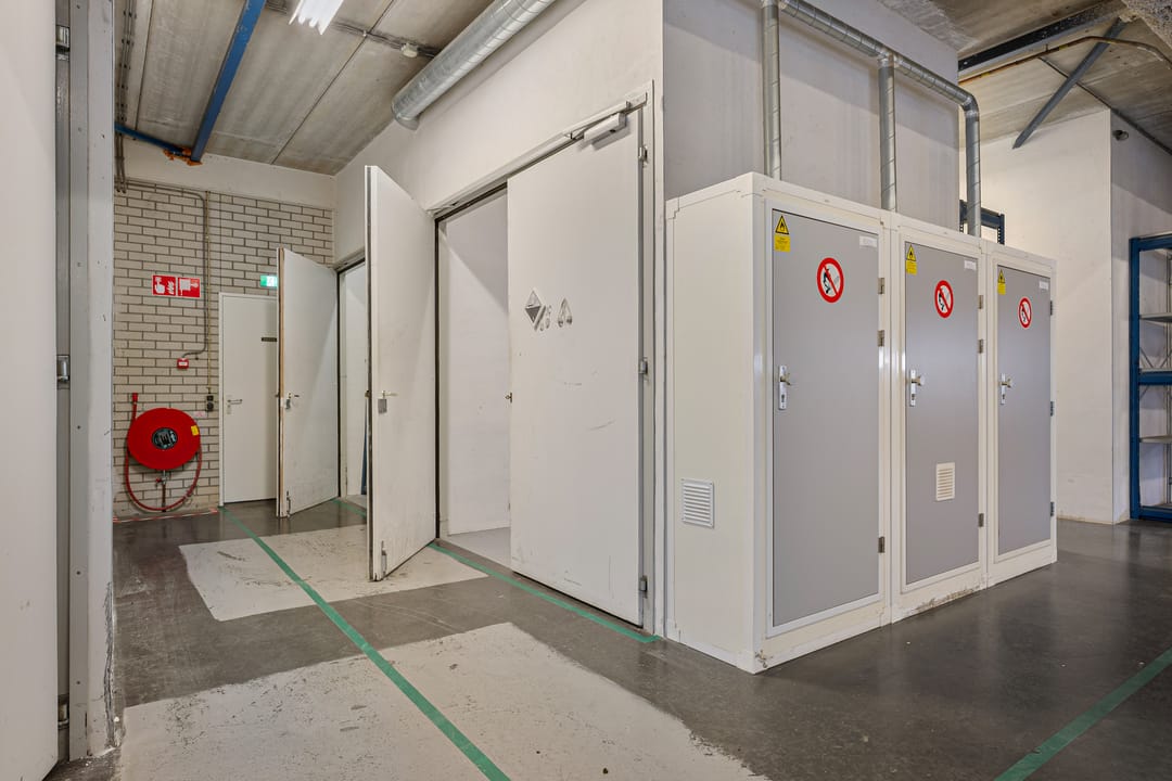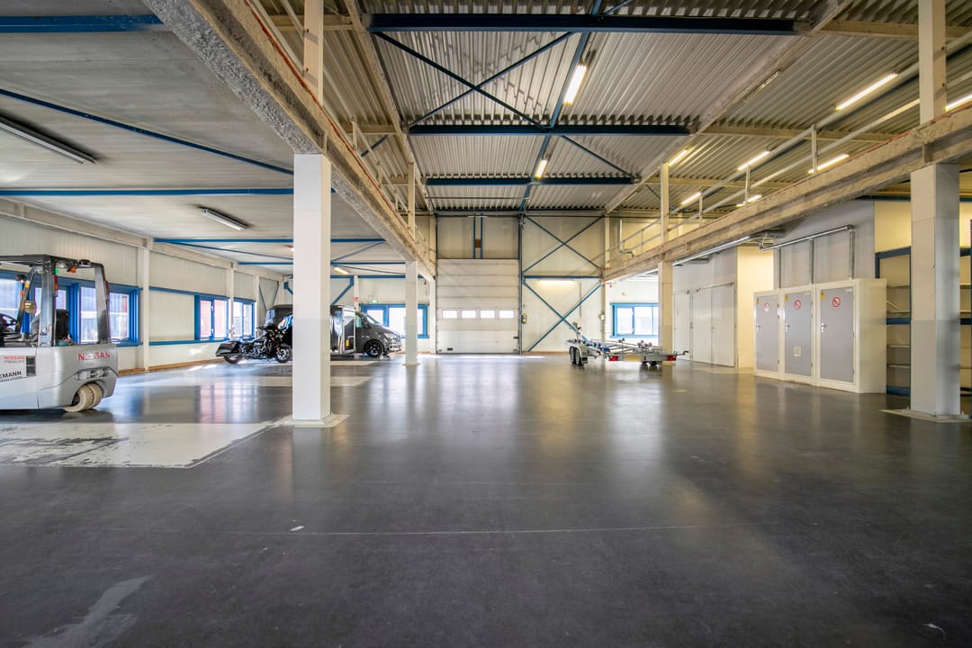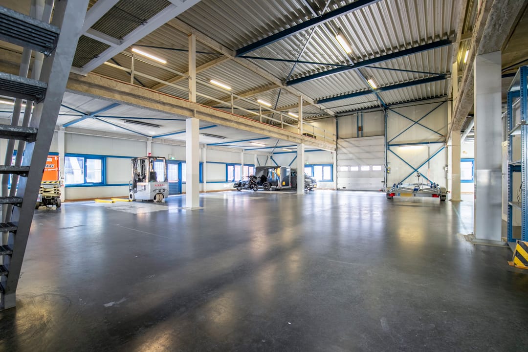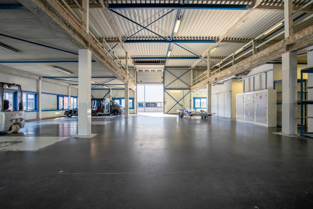 - Lichtstraten, overheaddeuren, krachtstroom, betonvloer, heater, toilet, pantry en inbouwarmaturen