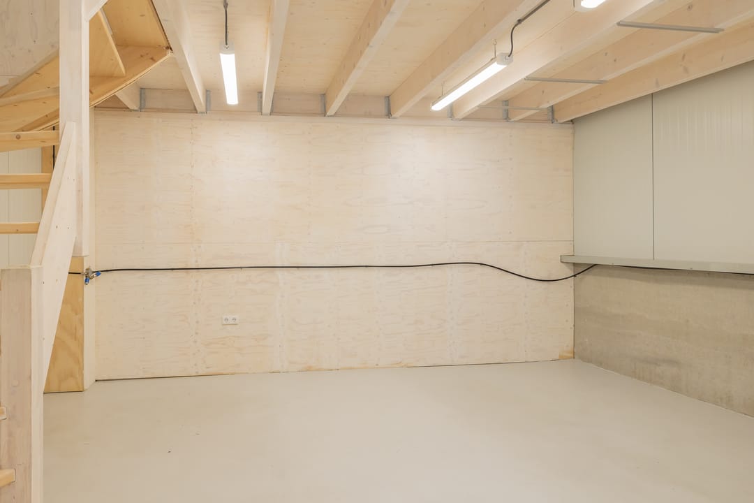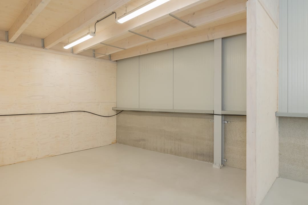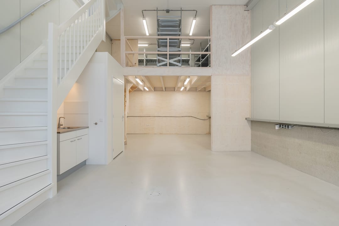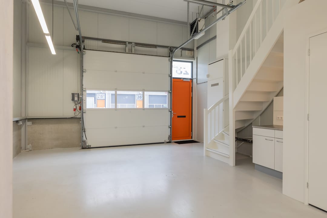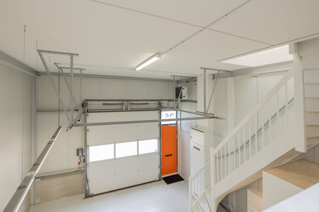 - Lichtstraten, overheaddeuren, krachtstroom, betonvloer, heater, toilet en pantry