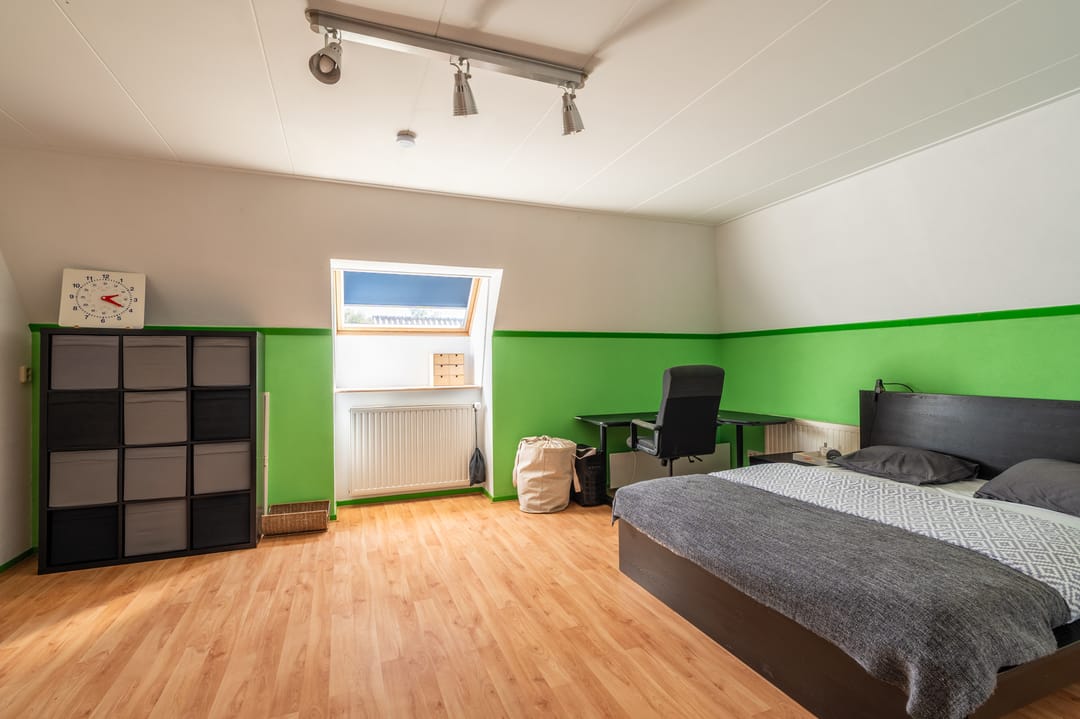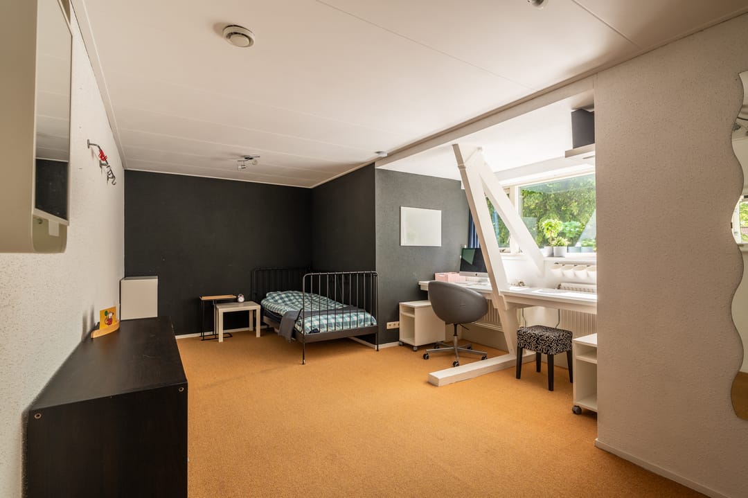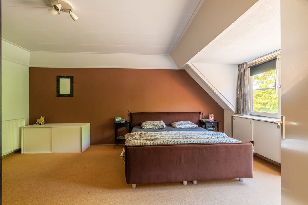 Op de eerste verdieping bevinden zich drie ruime kamers die naast slaapkamer eveneens uitstekend inzetbaar zijn als kantoor-, behandel- of werkruimtes, naast een toilet en toegang tot een royale zolderverdieping.