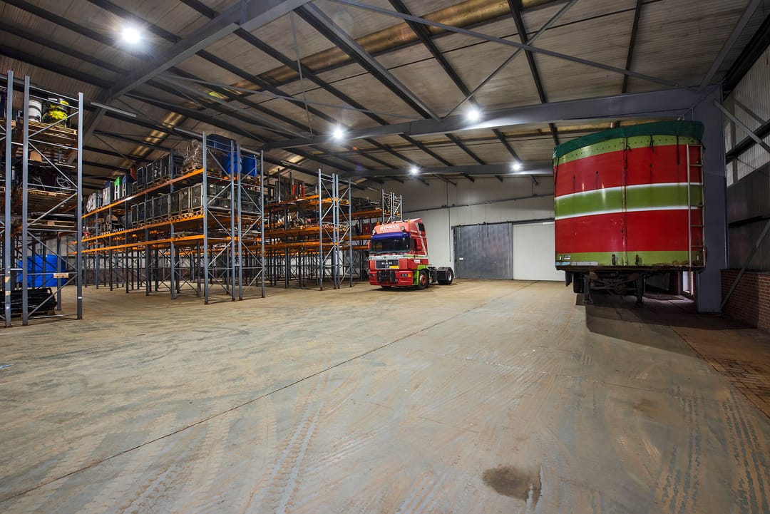 - Overheaddeuren, krachtstroom, betonvloer en heater