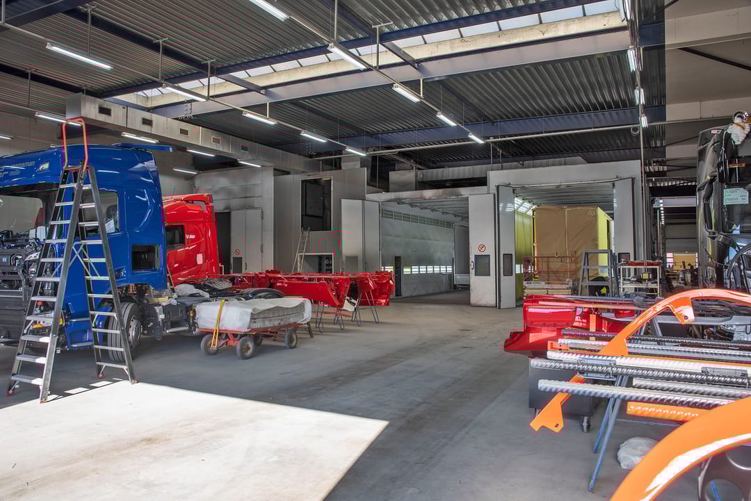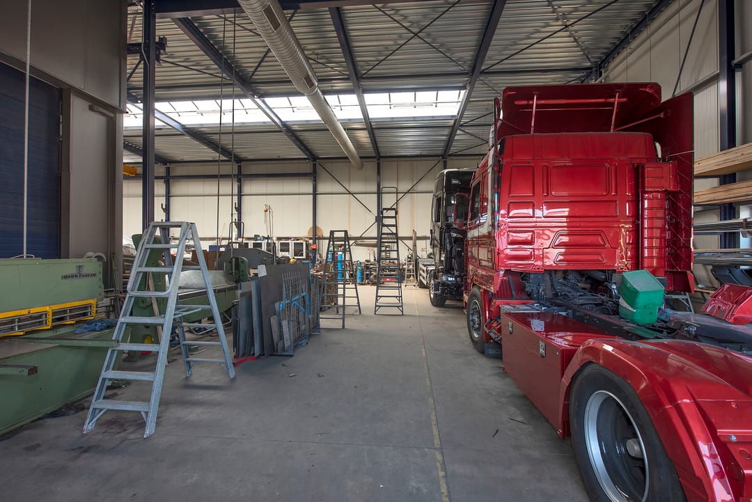 Momenteel zijn tal van zaken aanwezig ten behoeve van een (vracht)auto spuiterij. Hiervan is op aanvraag een uitgebreide lijst beschikbaar en deze zaken kunnen naar wens tegen meerprijs worden overgenomen.