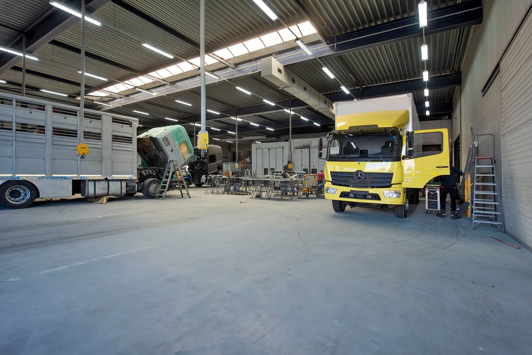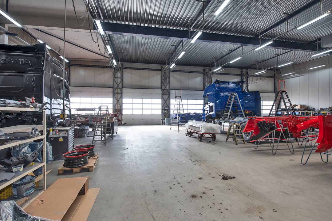- Lichtstraten, overheaddeuren, krachtstroom, betonvloer, heater en pantry