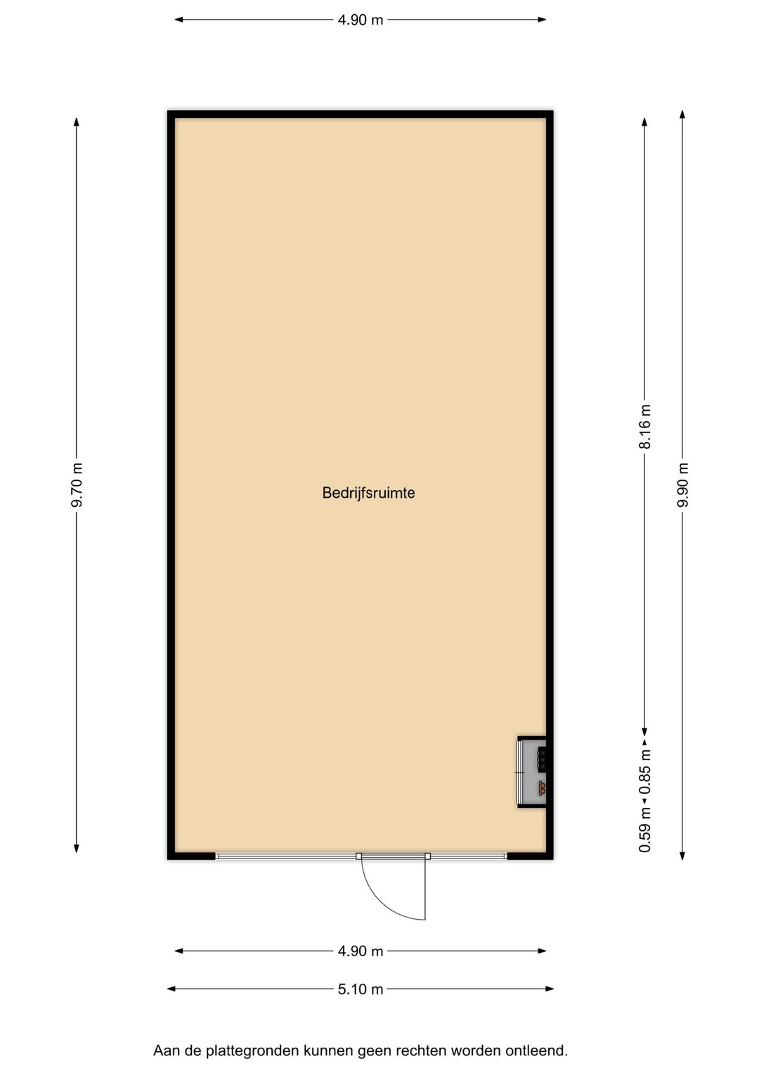 - Rioolaansluiting achter in de bedrijfsruimte;
