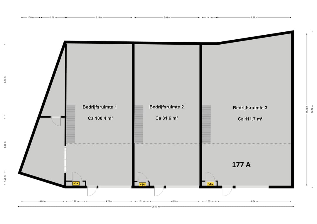 De bedrijfsunit wordt casco-plus opgeleverd en is onder andere voorzien van: