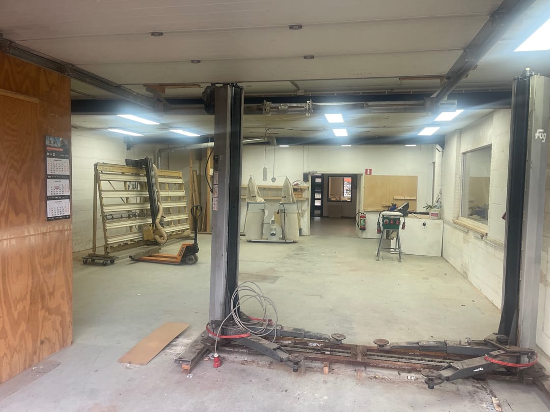 - Overheaddeuren, betonvloer, toilet en pantry