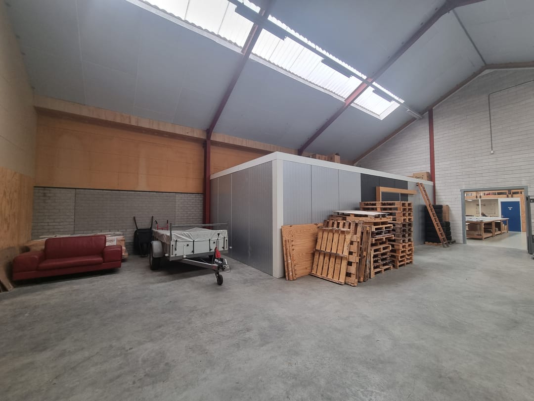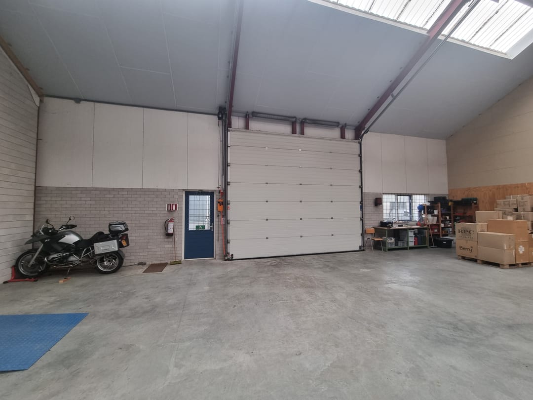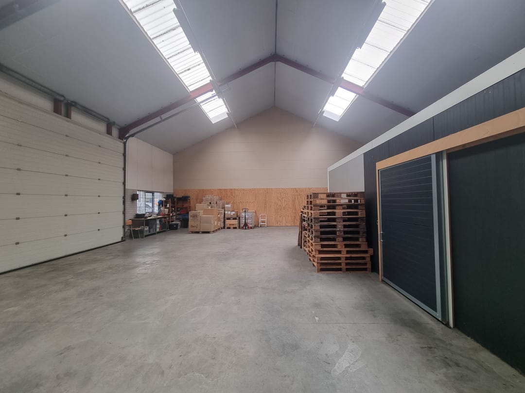 - Overheaddeuren, betonvloer, heater, toilet, pantry en te openen ramen