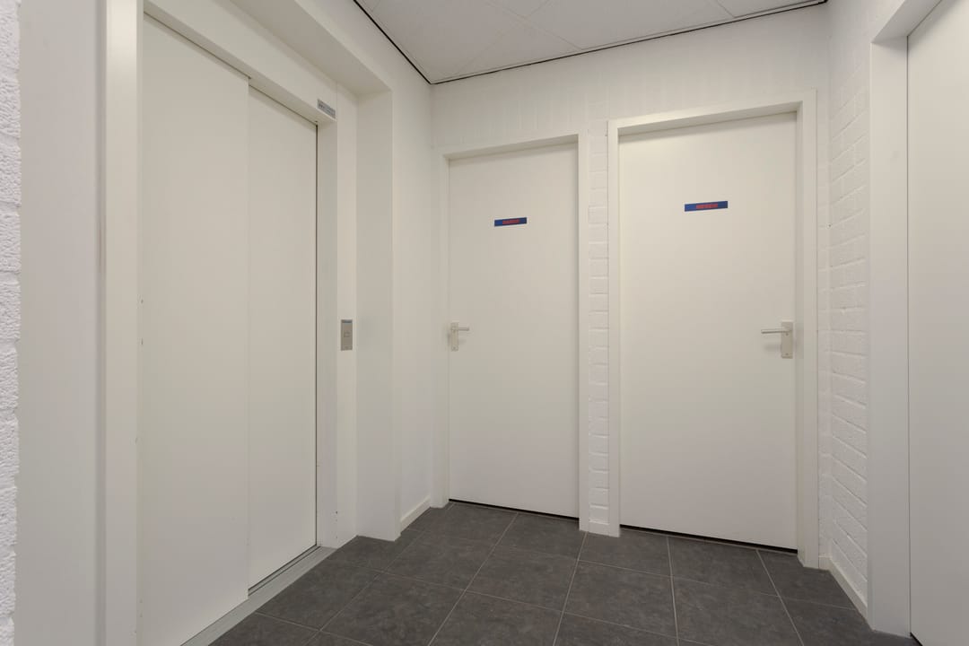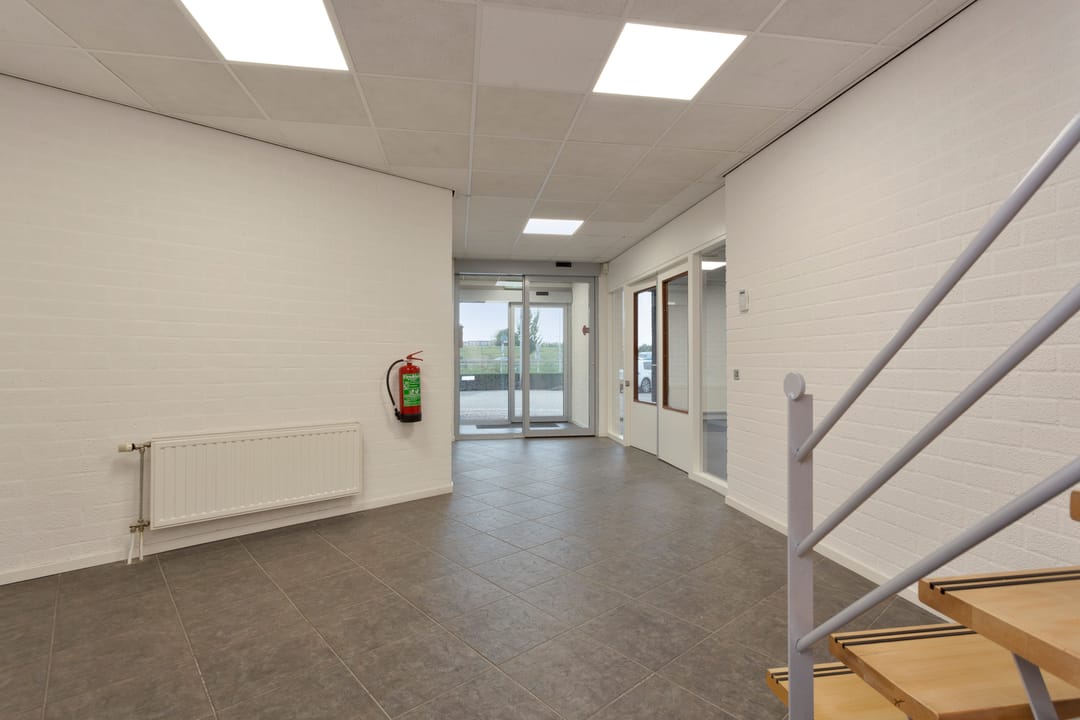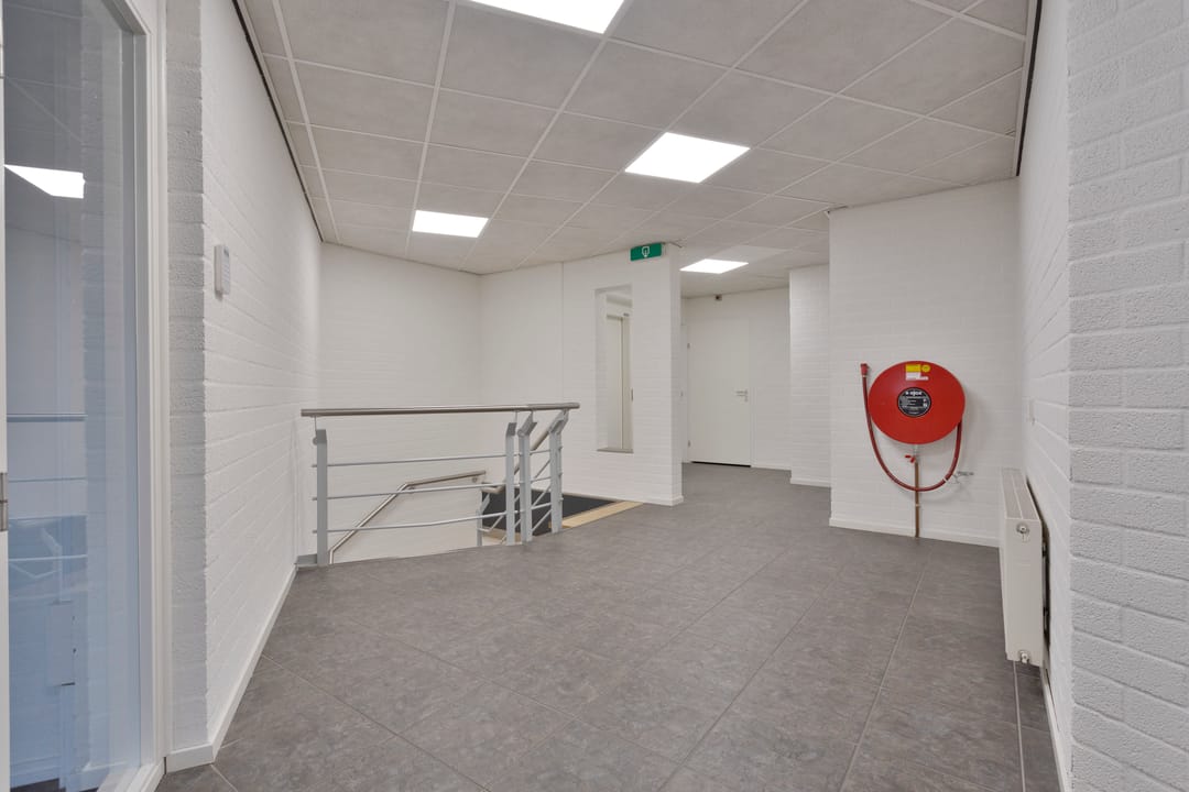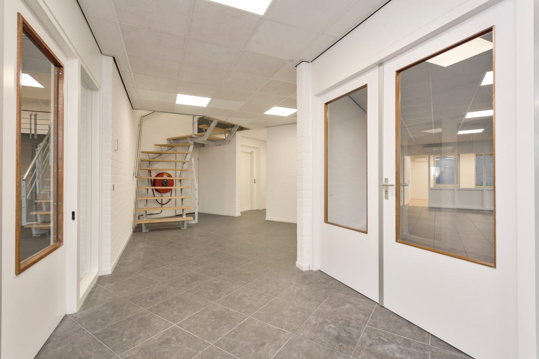 Ruime representatieve entree die toegang biedt tot verschillende kantoorvertrekken, showroom, toiletvoorzieningen en pantry. Via het kantoorgedeelte kom je in de open bedrijfsruimte terecht die een doorgang heeft naar het achtergelegen bedrijfsruimte. Via de showroom kom je in een andere kantoorvertrek die ook toegang heeft naar het achtergelegen bedrijfsruimte. Via de trapopgang of lift in de entree of de trap in de showroom kom je op de kantoorverdieping met verschillende kantoor/spreekkamers. Op de verdieping is ook een aparte toiletvoorziening en pantry.