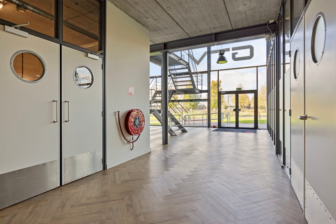 - Het complex beschikbar over uitstraling en hoogwaardige afwerking, er is gekozen voor een zogenaamde ‘’Industrial look’’ waardoor constructie details zichtbaar zijn gebleven;