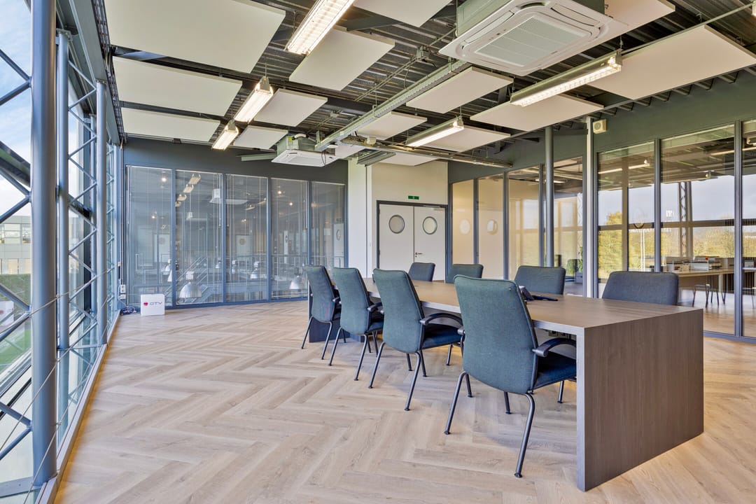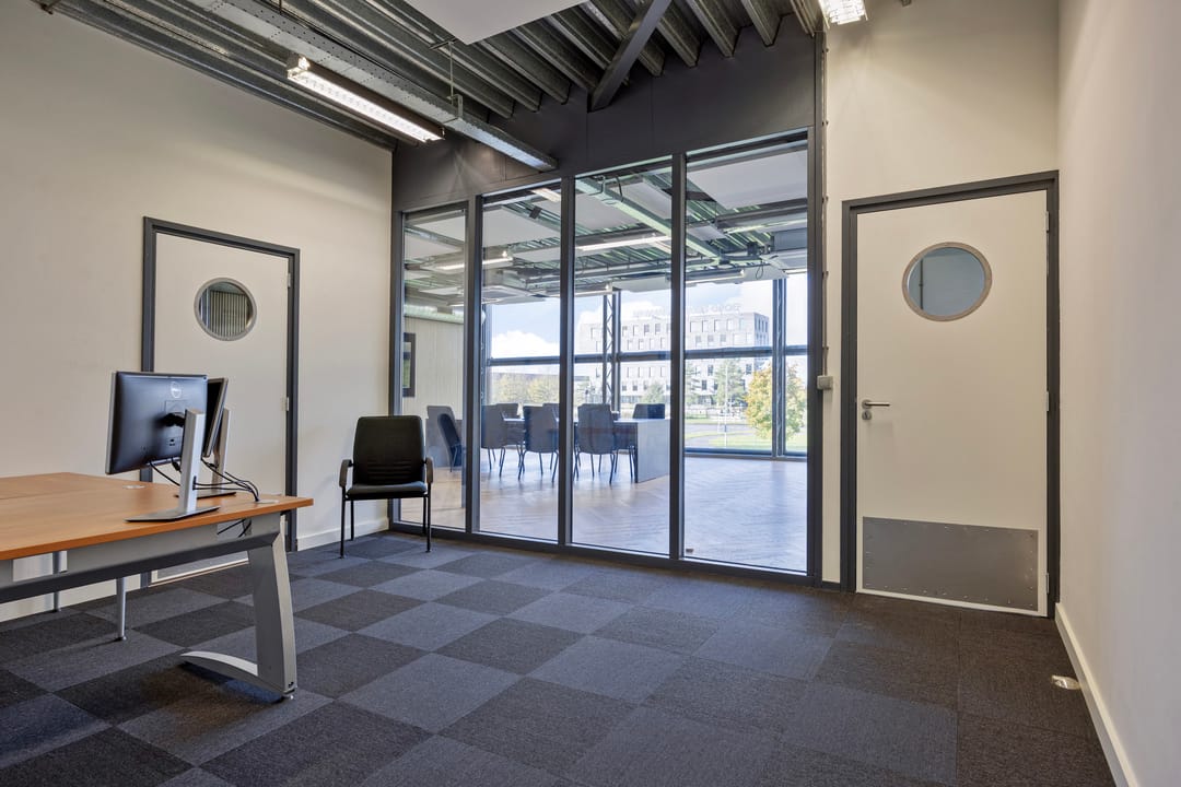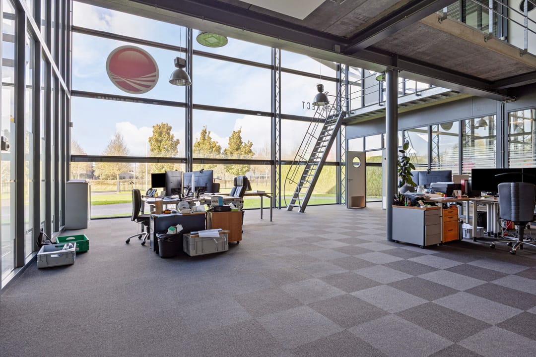 - Door de glazen pui is er veel daglicht in de kantoorruimte;