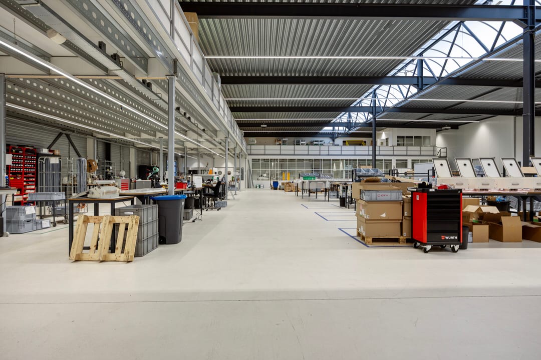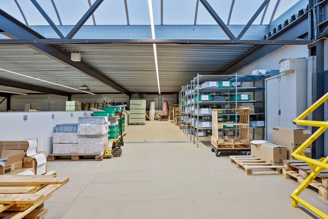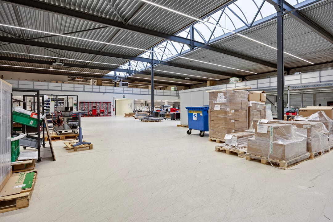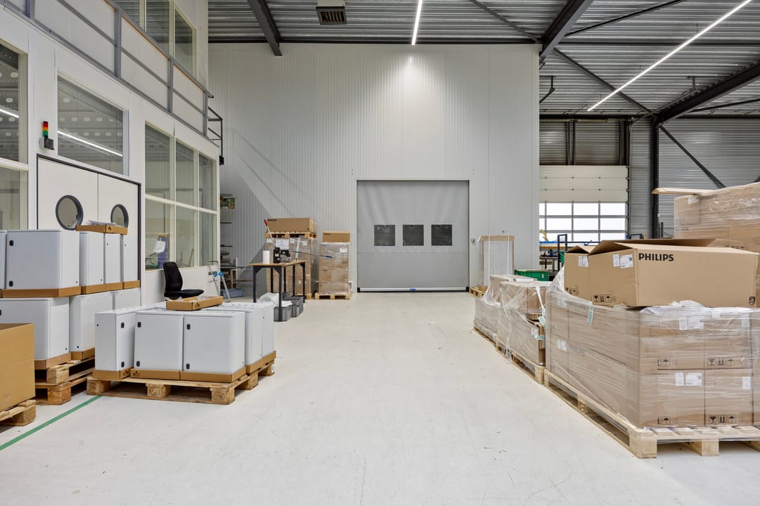 - Airconditioning, lichtstraten, overheaddeuren, krachtstroom, betonvloer, heater, toilet, pantry en te openen ramen