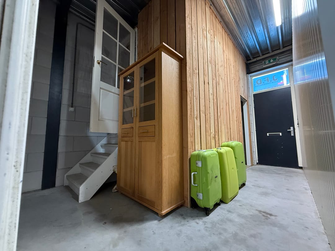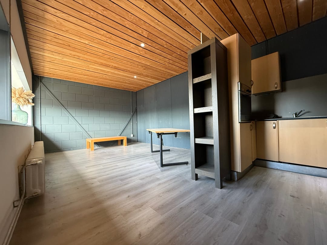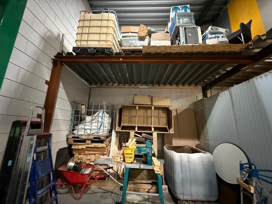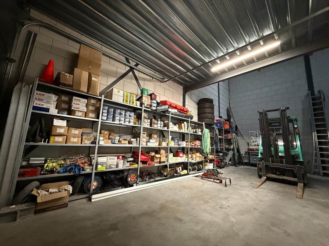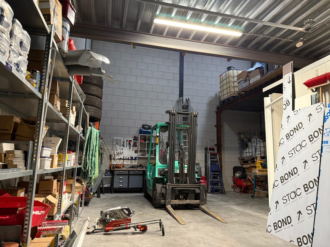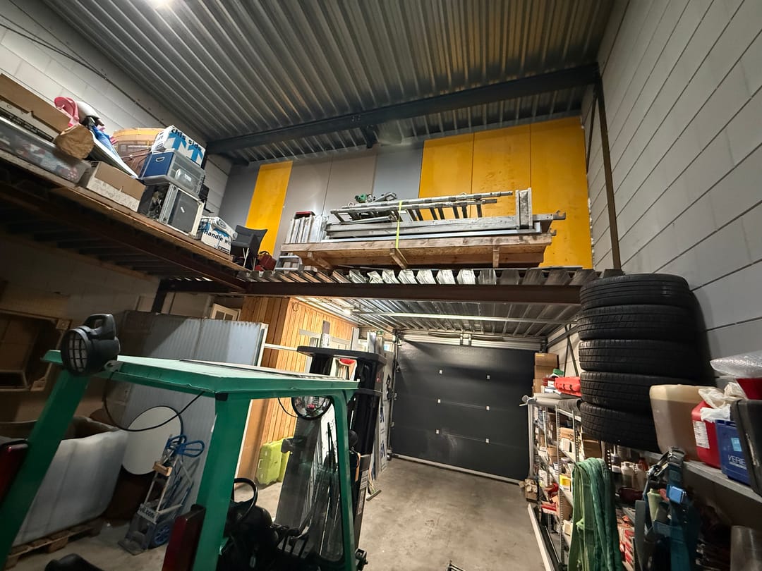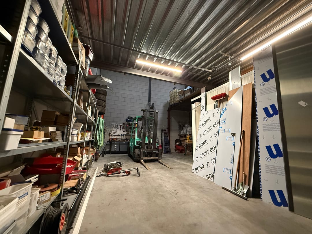 - Overheaddeuren, betonvloer, toilet en pantry