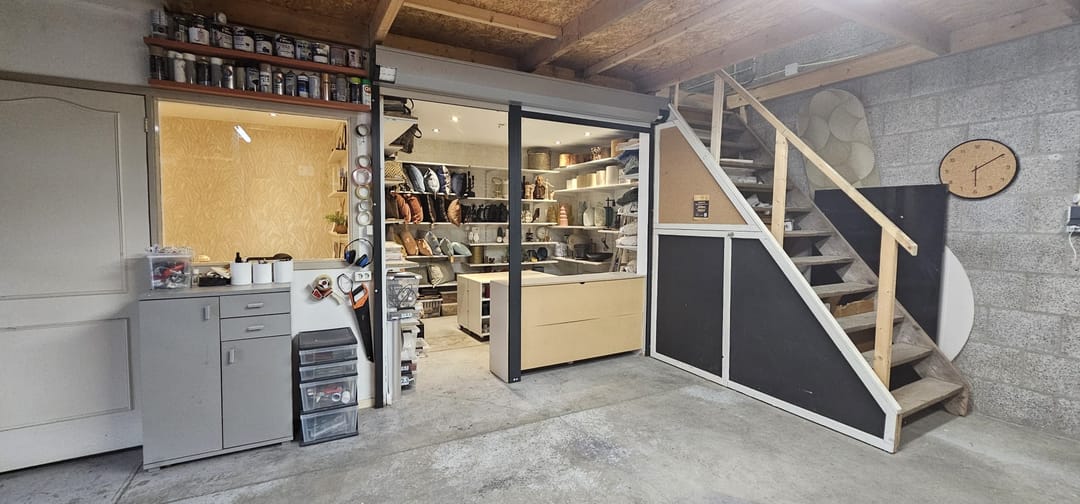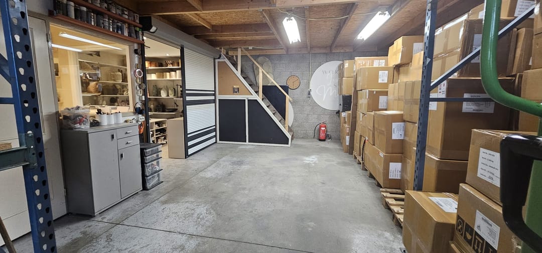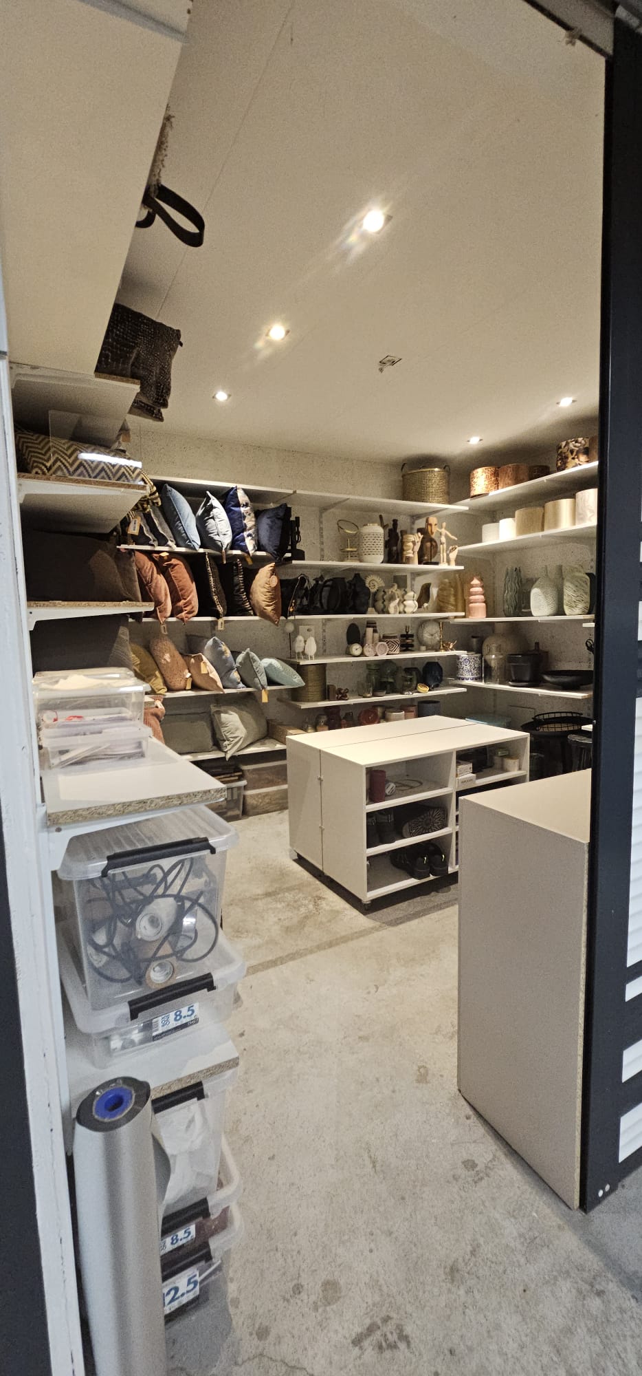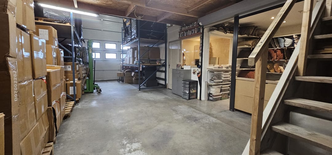 • De stellingkasten en het plankensysteem in de opslag achter de kantoorruimte zijn niet ter overname en worden verwijderd.