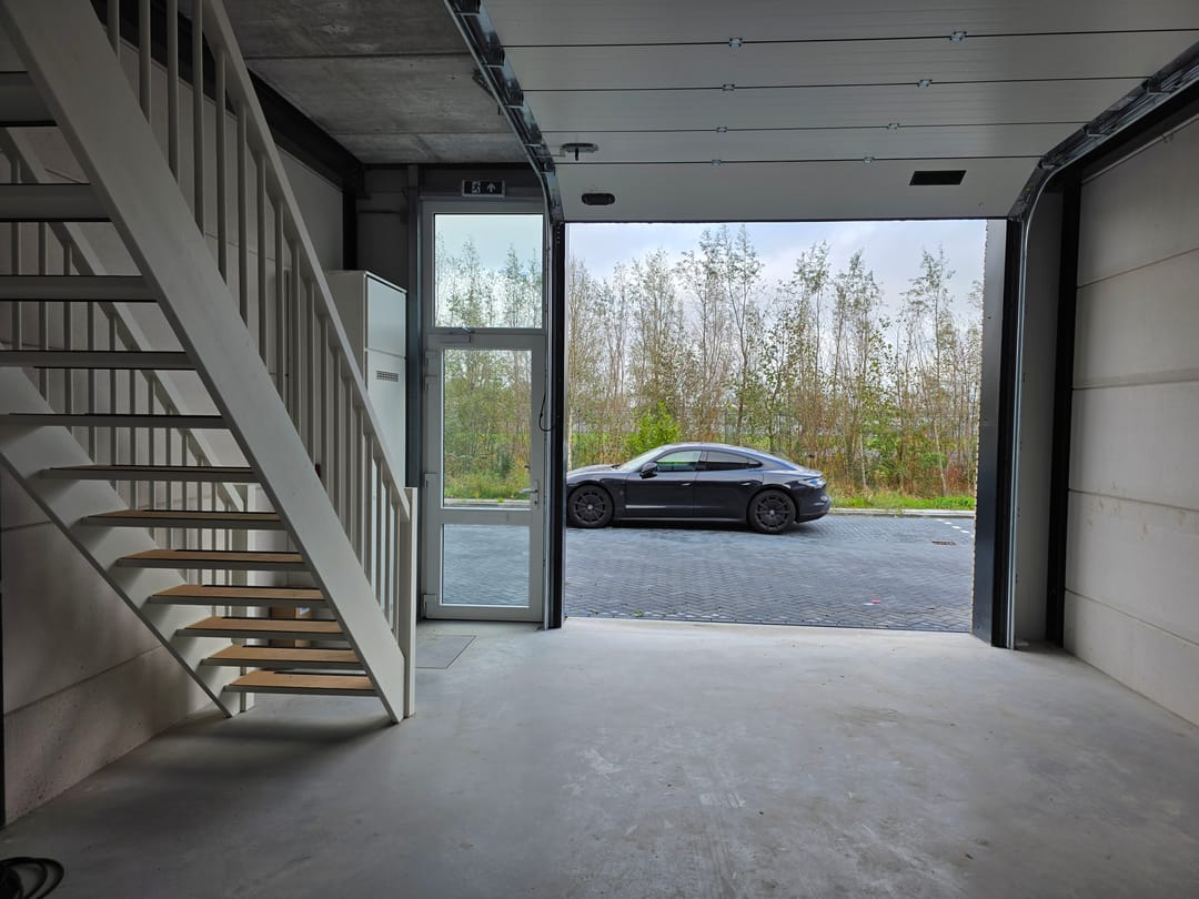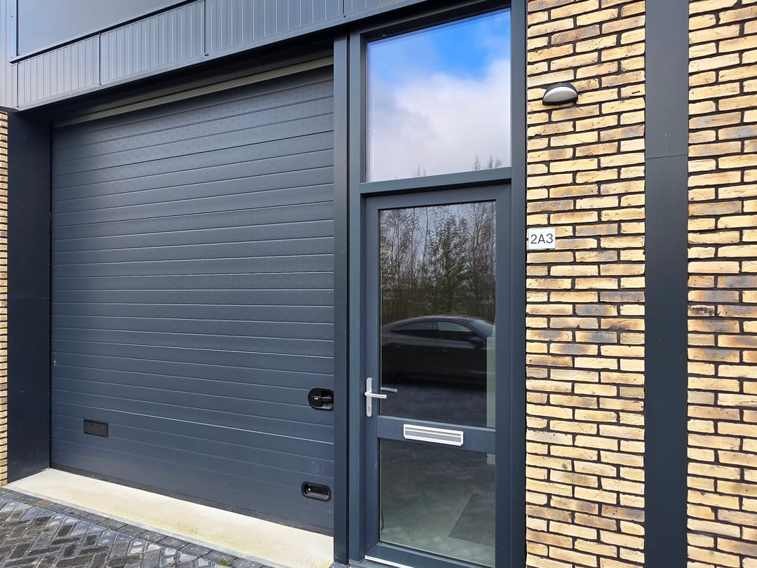 De bedrijfsunit is opgeleverd in nieuwstaat en beschikt over een moderne uitstraling met donkere gevelbekleding en baksteenaccenten. Dankzij de hoge overheaddeur en aparte entree is de ruimte zowel functioneel als representatief.
