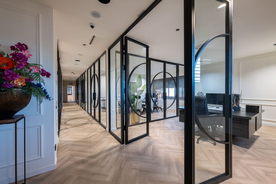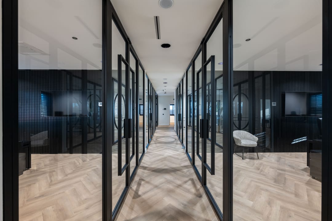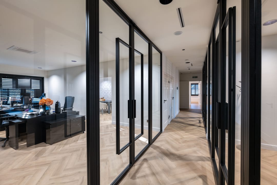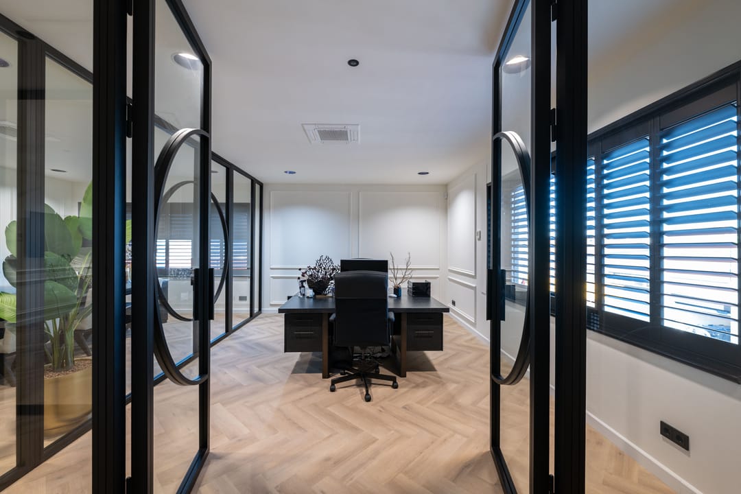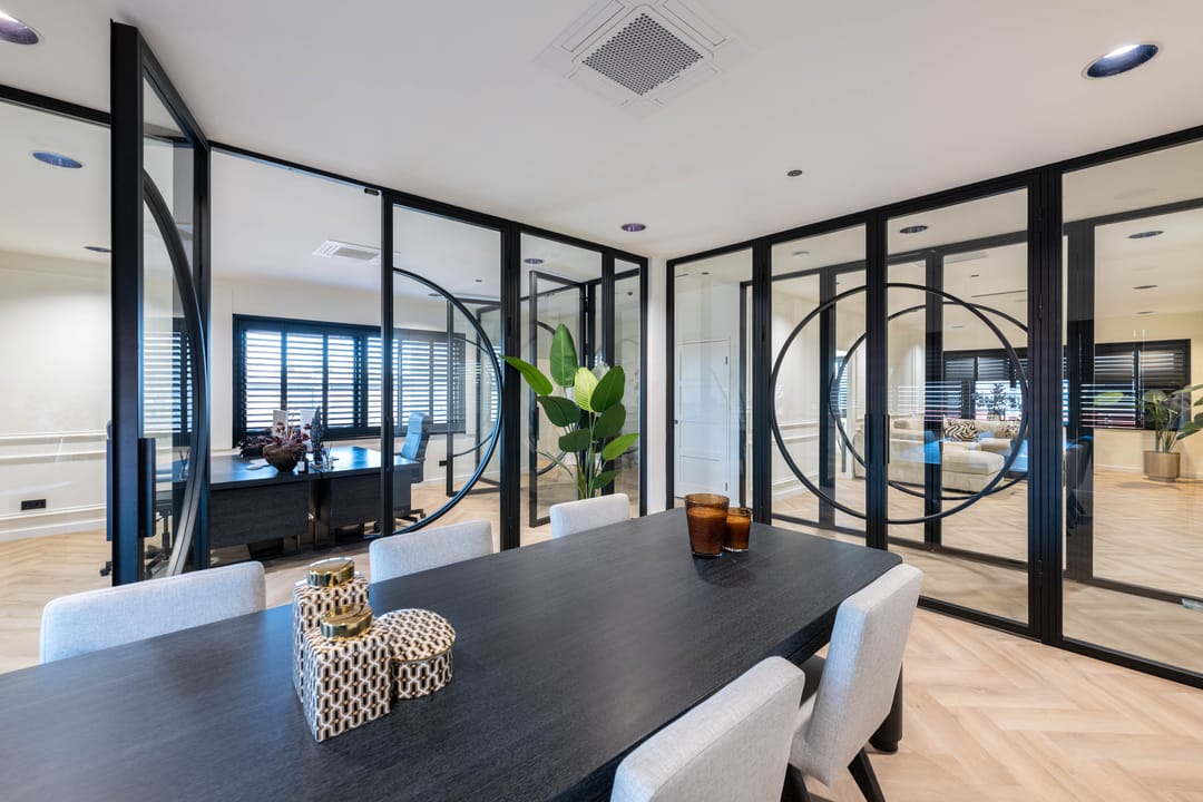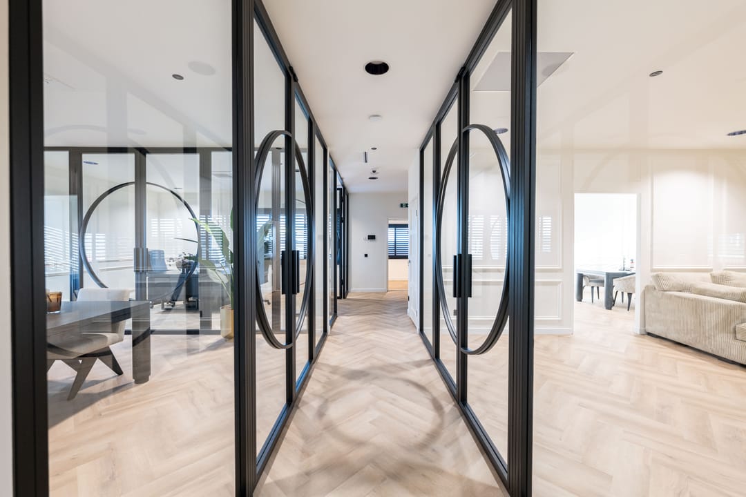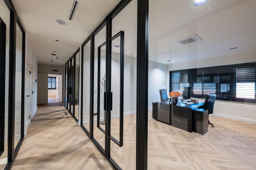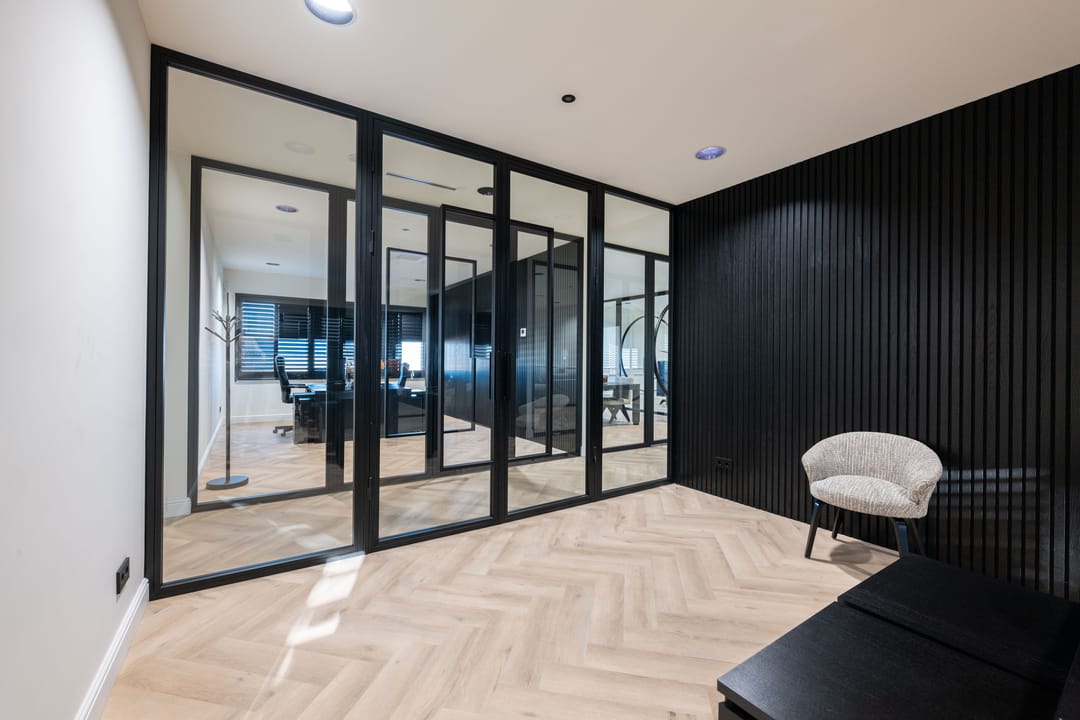 - Glazen scheidingswanden;
