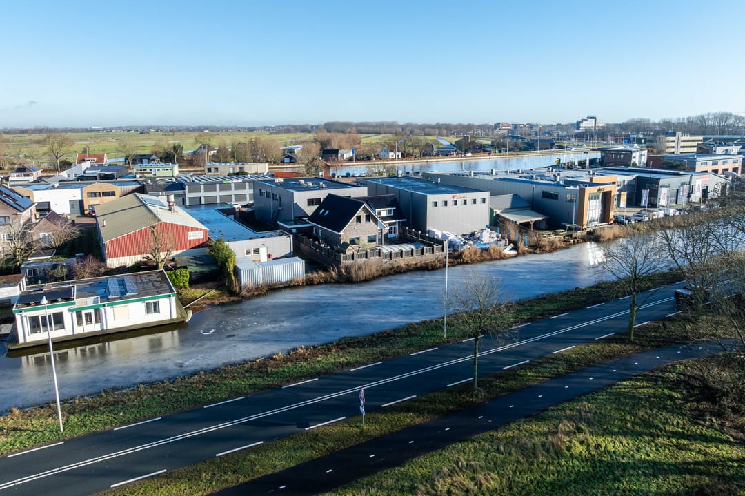 Het geheel is gelegen op 1.215 m² eigen grond in een woon-werkgebied in Waddinxveen-Zuid. De locatie kenmerkt zich door een combinatie van bedrijfsruimten en woningen, wat het bijzonder geschikt maakt voor ondernemers die wonen en werken willen combineren. De straat heeft een rustige, maar praktische uitstraling en is goed bereikbaar voor zowel personen- als bedrijfsverkeer. De bedrijfshallen beschikken over een verhuurbaar vloeroppervlak van circa 340 m², terwijl de kantoorruimtes op de verdieping eveneens circa 340 m² omvatten. De bedrijfswoning, gebouwd in 2001, heeft een woonoppervlakte van ca. 184 m².