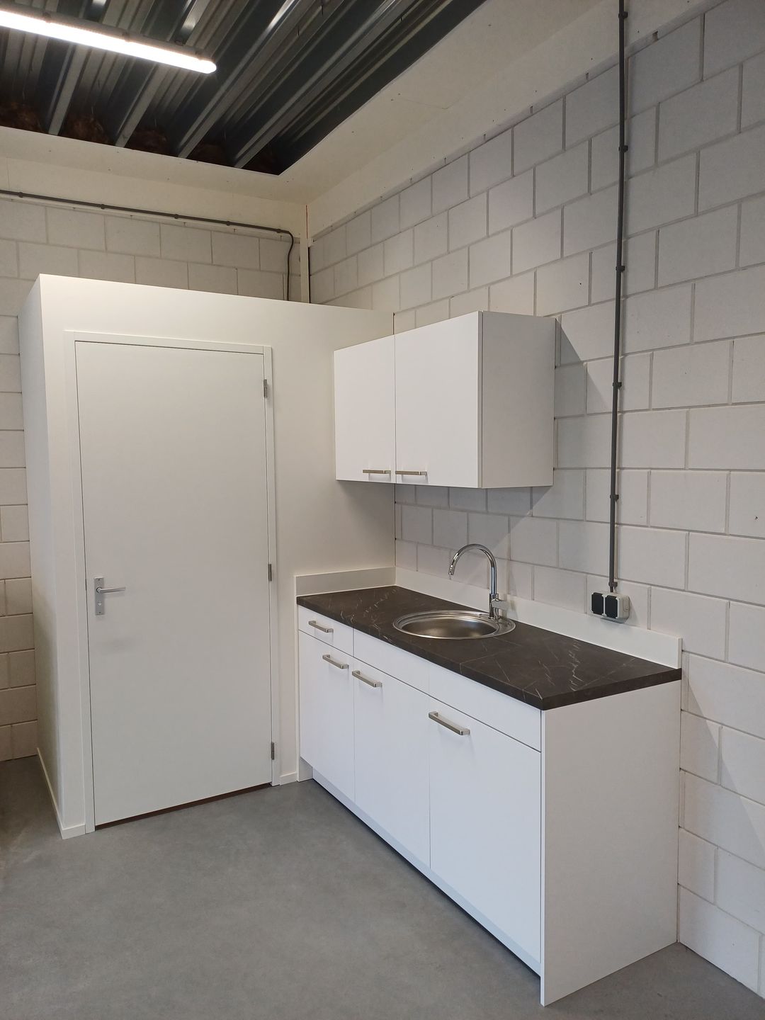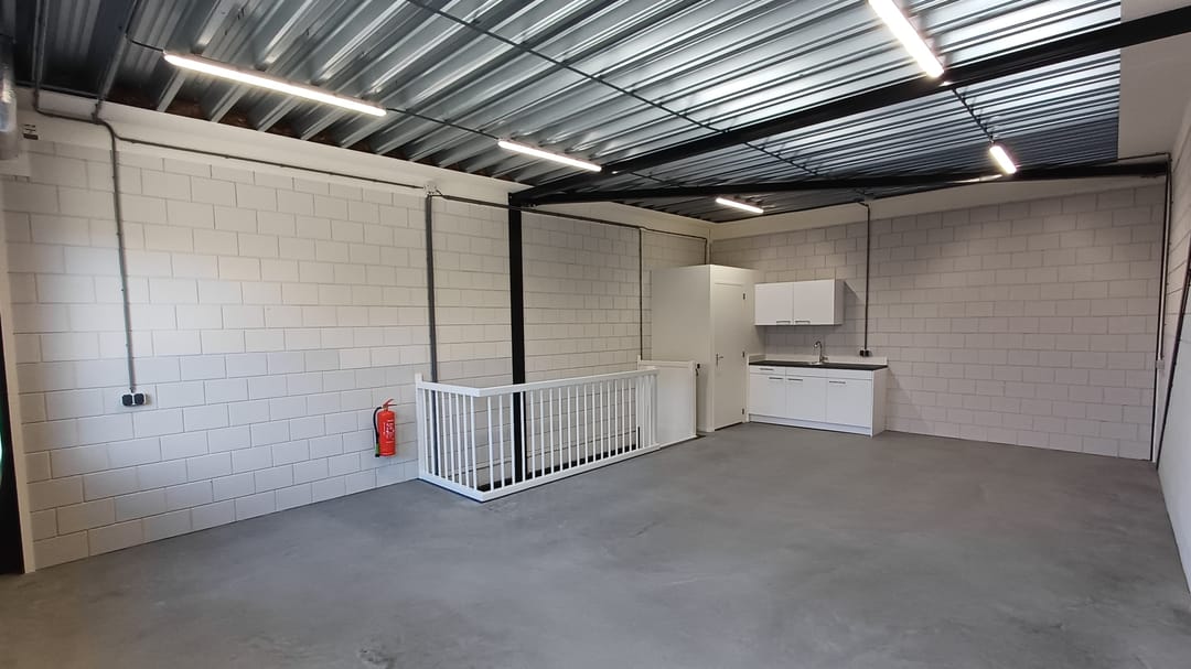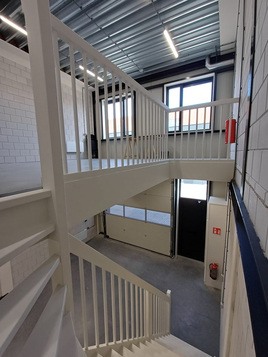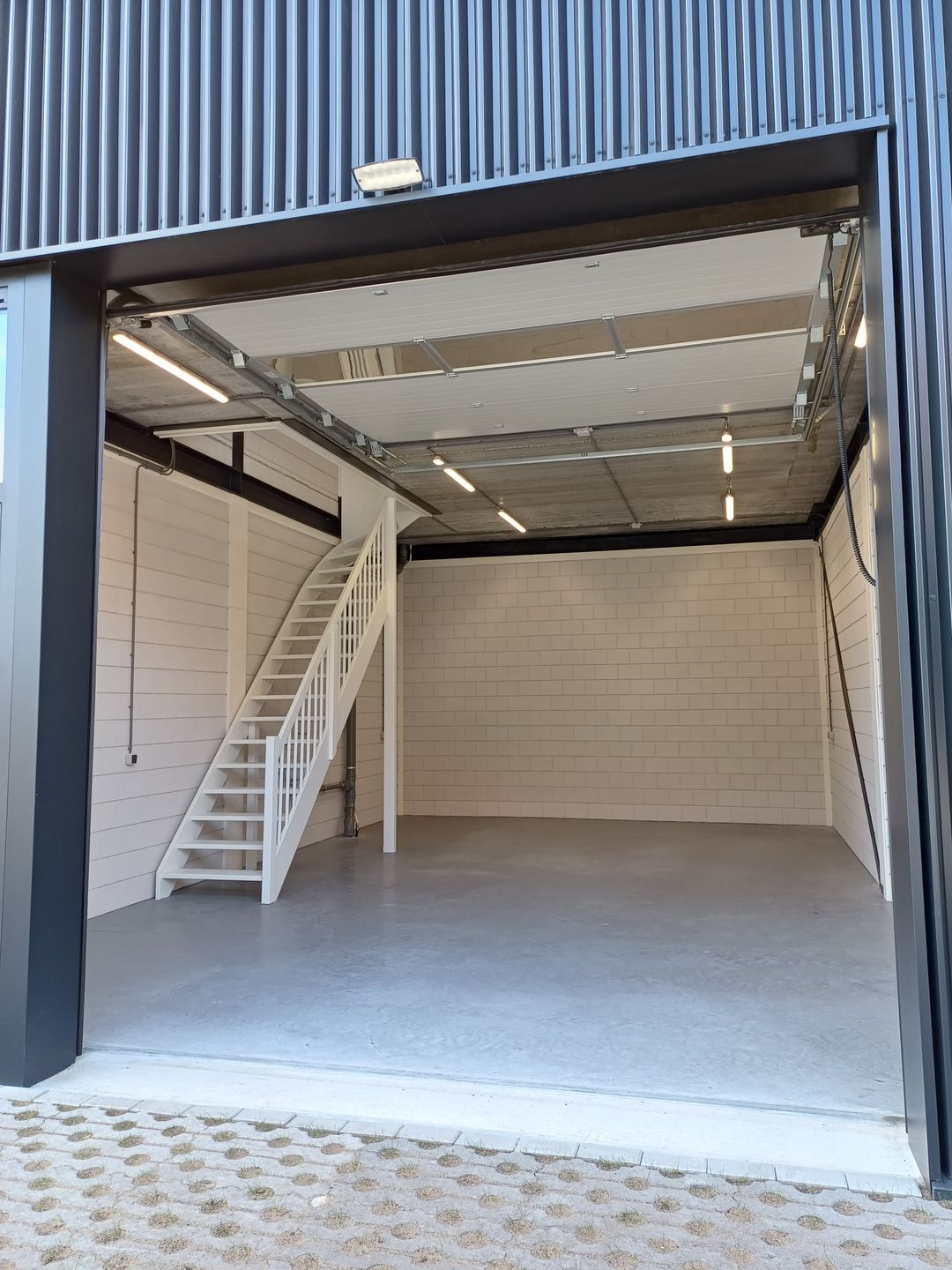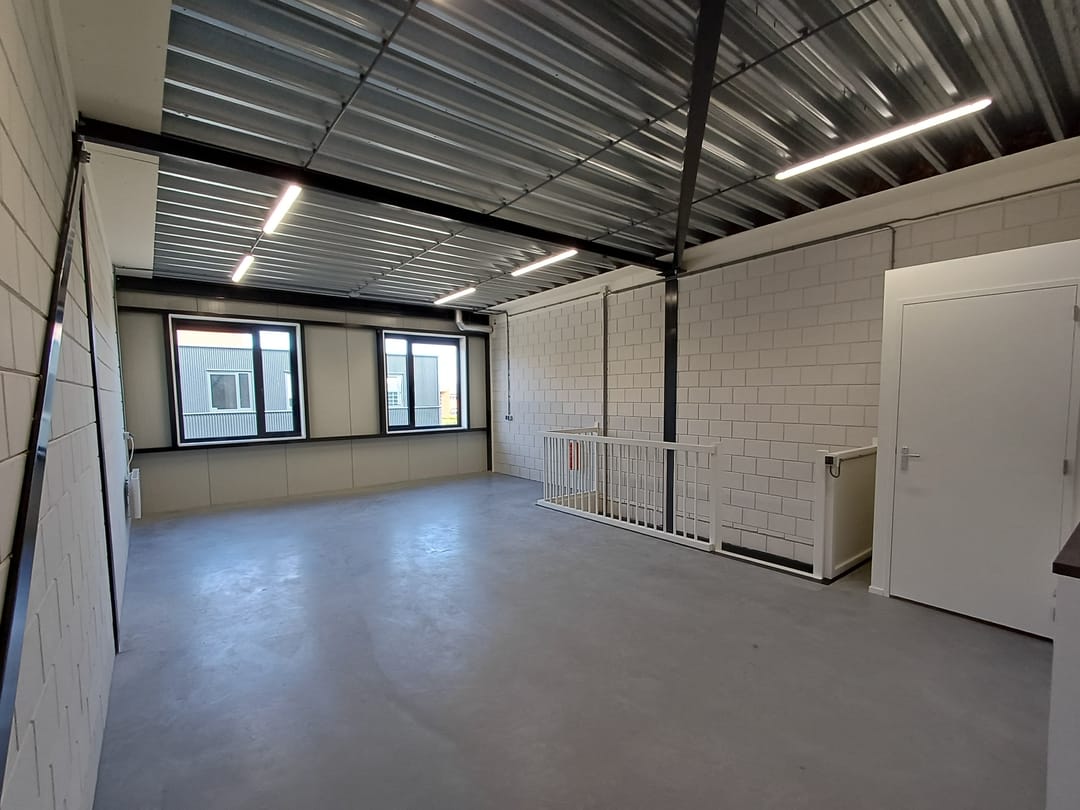 - Lichtstraten, overheaddeuren, betonvloer, heater, toilet, pantry, inbouwarmaturen en te openen ramen