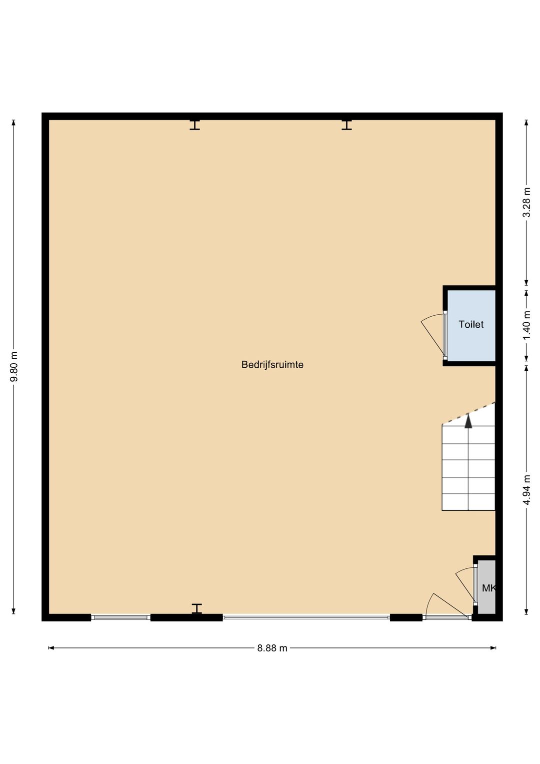 - Overheaddeuren, krachtstroom, betonvloer, toilet en pantry