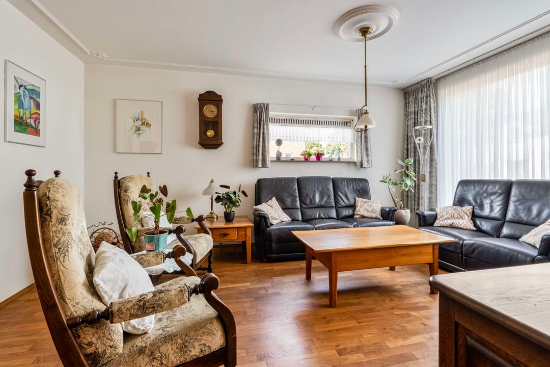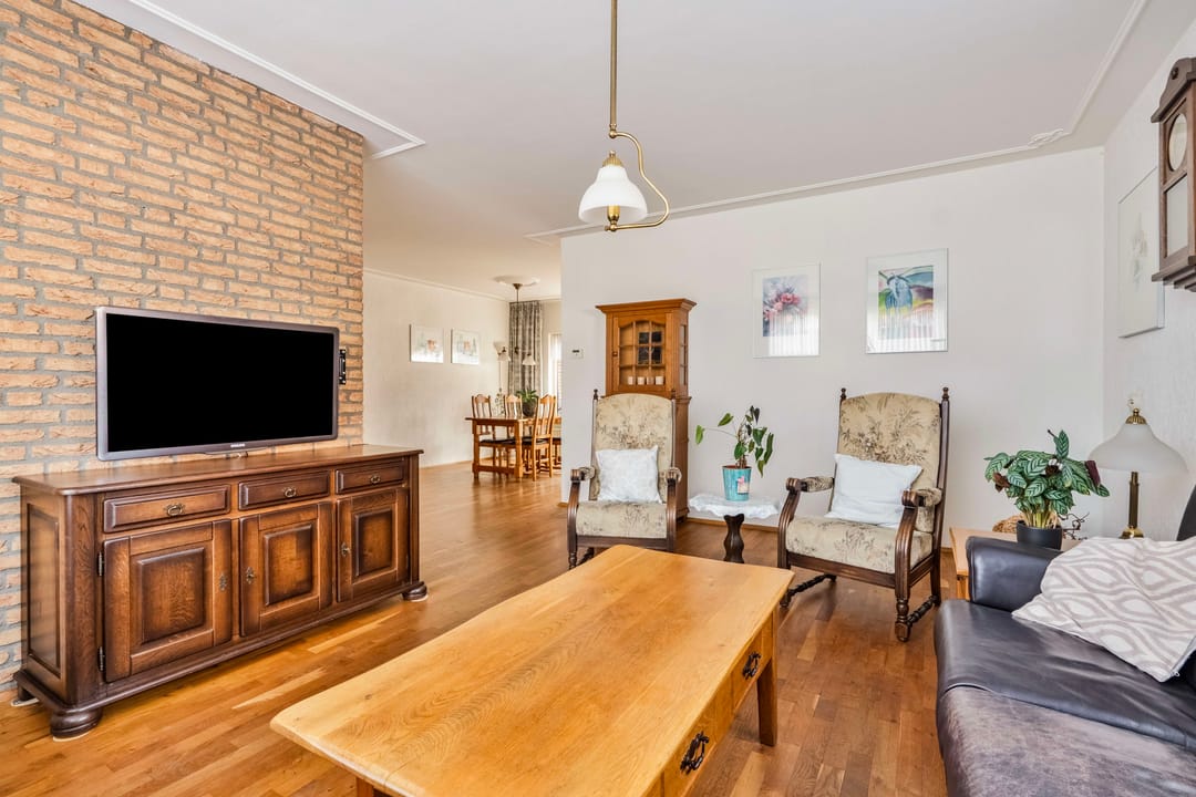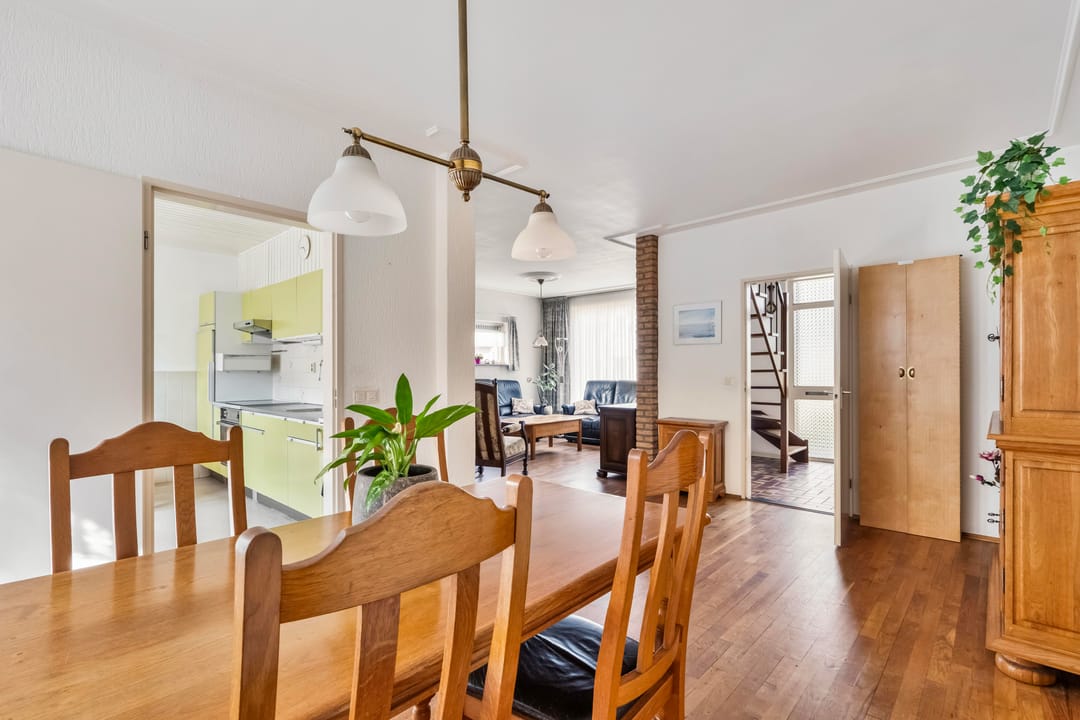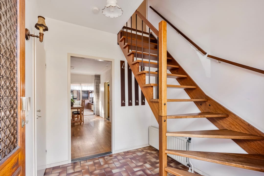 Via de voordeur kom je in de entree met toegang tot het toilet, de trapopgang, meterkast en een bergkast. De ruime woonkamer heeft veel lichtinval en biedt eenvoudig ruimte voor een zit- en eetgedeelte.