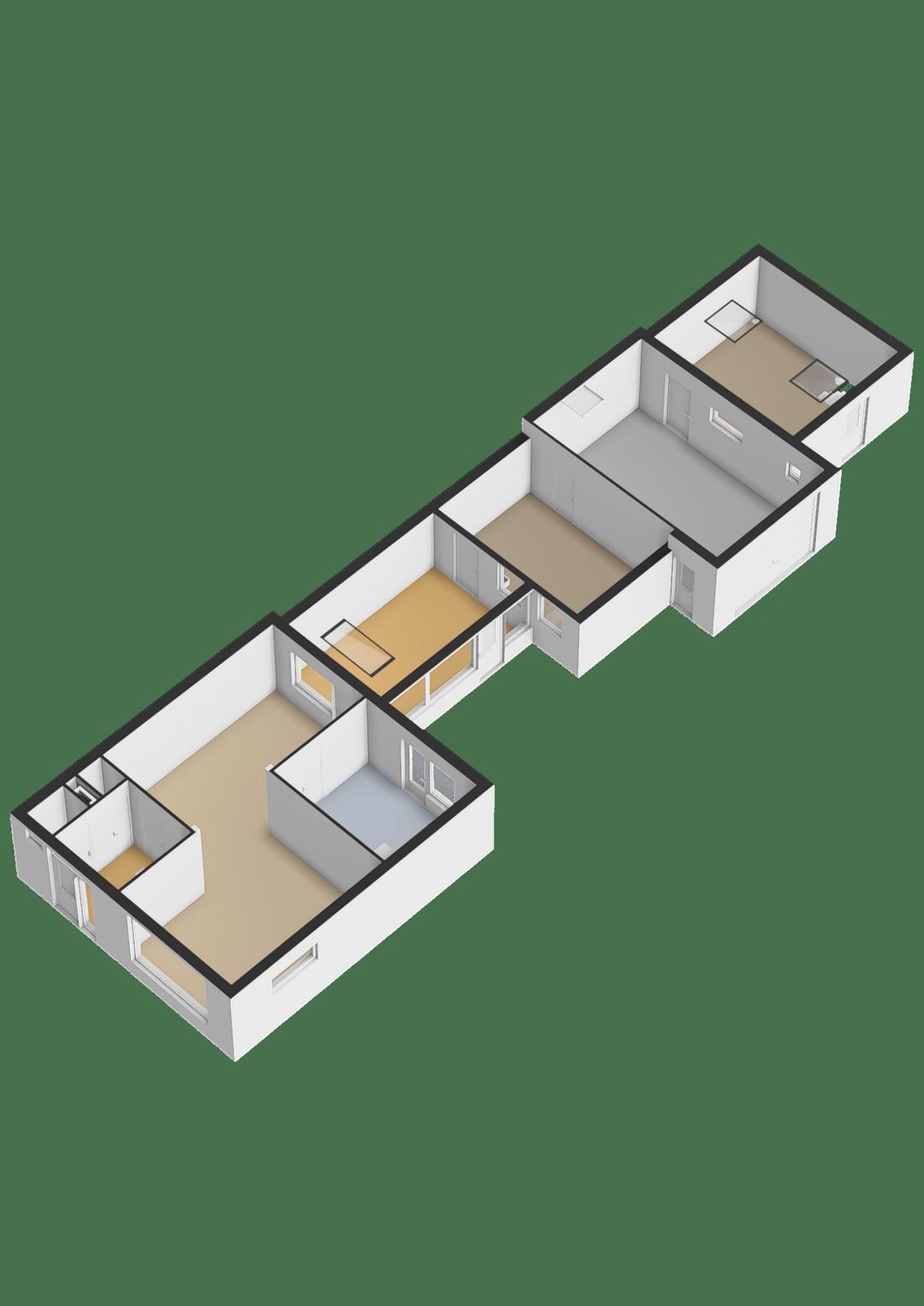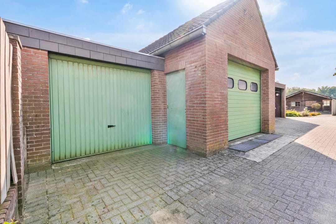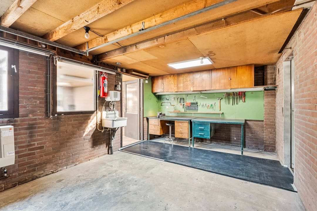 Op de begane grond tref je een grote, ruime kamer die verwarmd is en naar wens kan worden ingericht als speelkamer, werkkamer of bijkeuken. Hierachter bevindt zich een tweede, multifunctionele kamer, ideaal te gebruiken als hobbyruimte of extra werkkamer. Daarachter ligt de eerste garage, royaal van formaat en voorzien van een elektrisch bedienbare sectionaaldeur, met voldoende plek voor een auto. Vanuit deze garage is er een trap naar een praktische ruimte, geschikt voor het opbergen van grotere spullen of seizoensmaterialen. Naast de garage bevindt zich een aparte ruimte met een trap naar de kelder, ideaal voor extra opslag. Daarnaast is er een tweede garage, die aan de woning grenst maar niet via een deur met de woning is verbonden. Deze garage is uitsluitend toegankelijk via de kanteldeur.