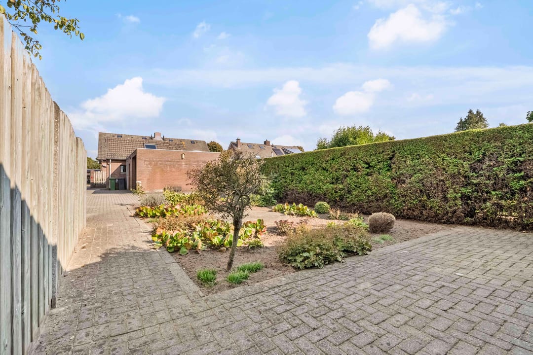 De tuin van circa 149 m² is betegeld, onderhoudsvriendelijk en biedt mogelijkheden voor een terras, plantenbakken of een gezellige buitenruimte. Daarnaast is er een charmant tuinhuis, ideaal om van te genieten of gezellig in te zitten.