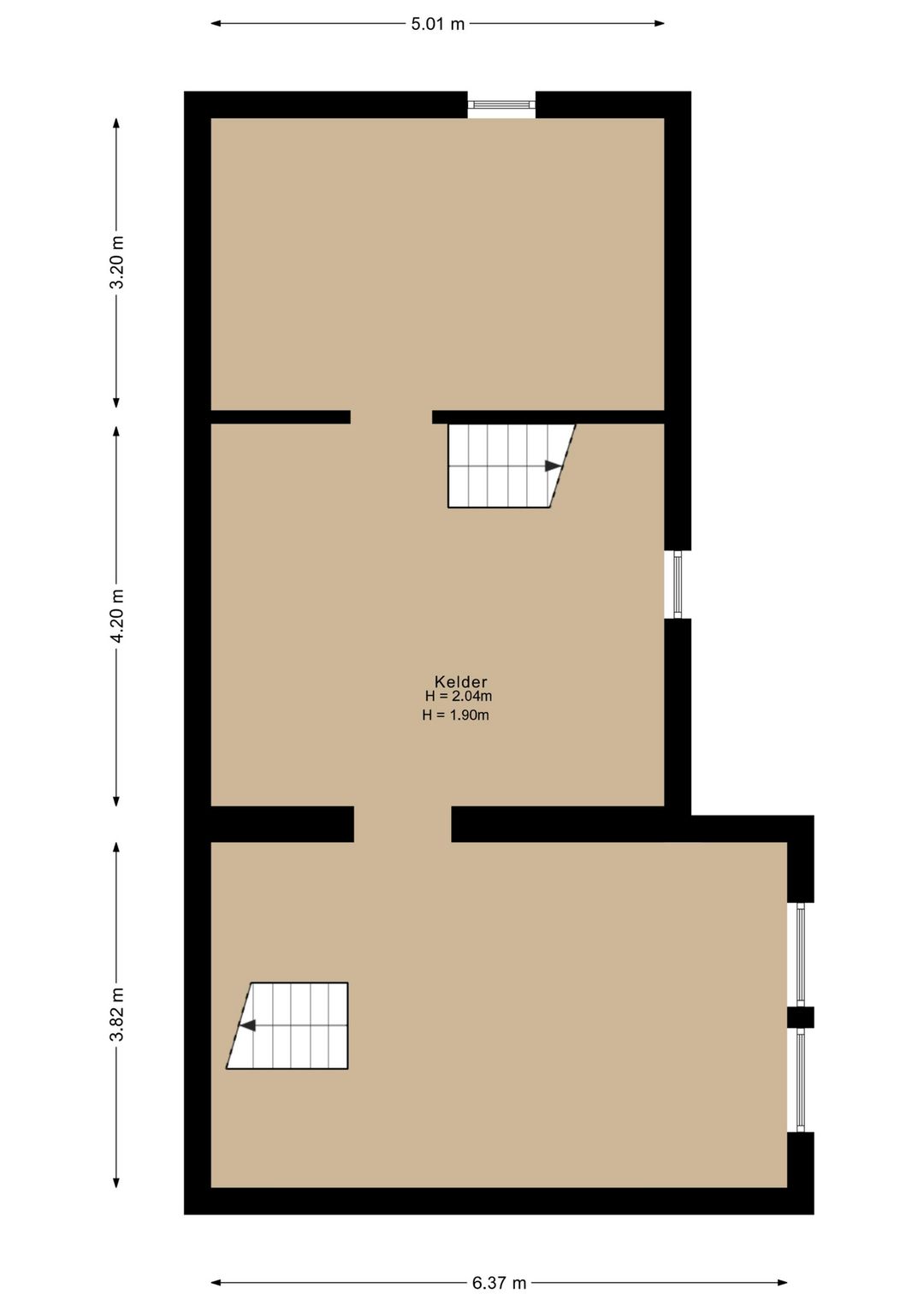 De kelder heeft een royale oppervlakte van 64 m² en is voorzien van dakverlichting. Deze ruimte is ideaal te gebruiken voor opslag of als provisieruimte.