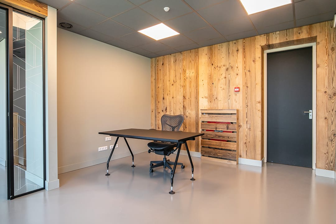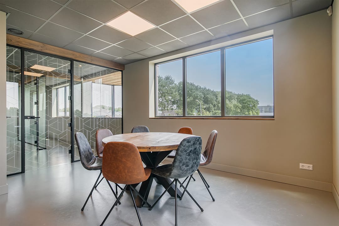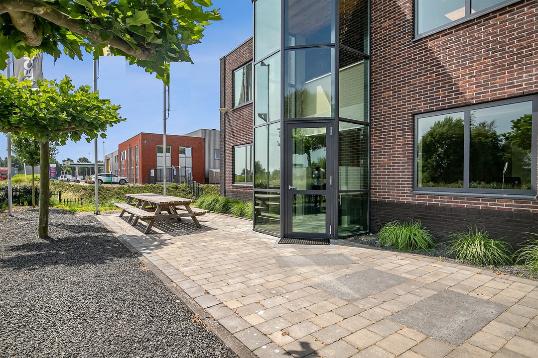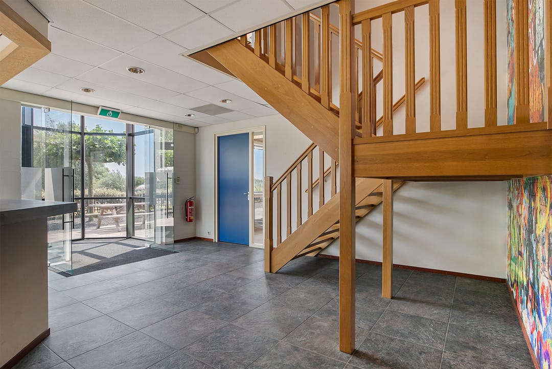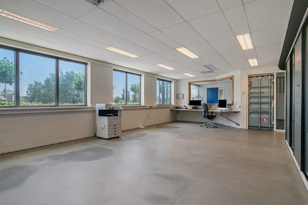 Begane grond: Royale en hoogwaardig afgewerkte hal met trap naar 1e verdieping. Voorportaal, 2 kantoorruimten en de toegang tot de achtergelegen bedrijfsruimte. De bedrijfsruimte is tevens van buitenaf toegankelijk middels een loopdeur en een royale elektrisch bedienbare overheaddeur. De bedrijfsruimte beschikt over een eigen toiletruimte. Tevens is er nog een extra nooduitgang aanwezig.