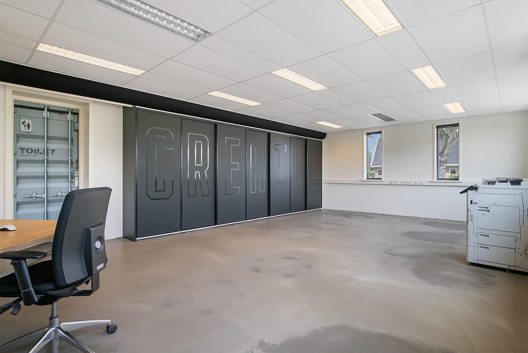 - Airconditioning, mechanische ventilatie, lichtstraten, overheaddeuren, krachtstroom, betonvloer, heater, toilet, pantry, inbouwarmaturen en te openen ramen