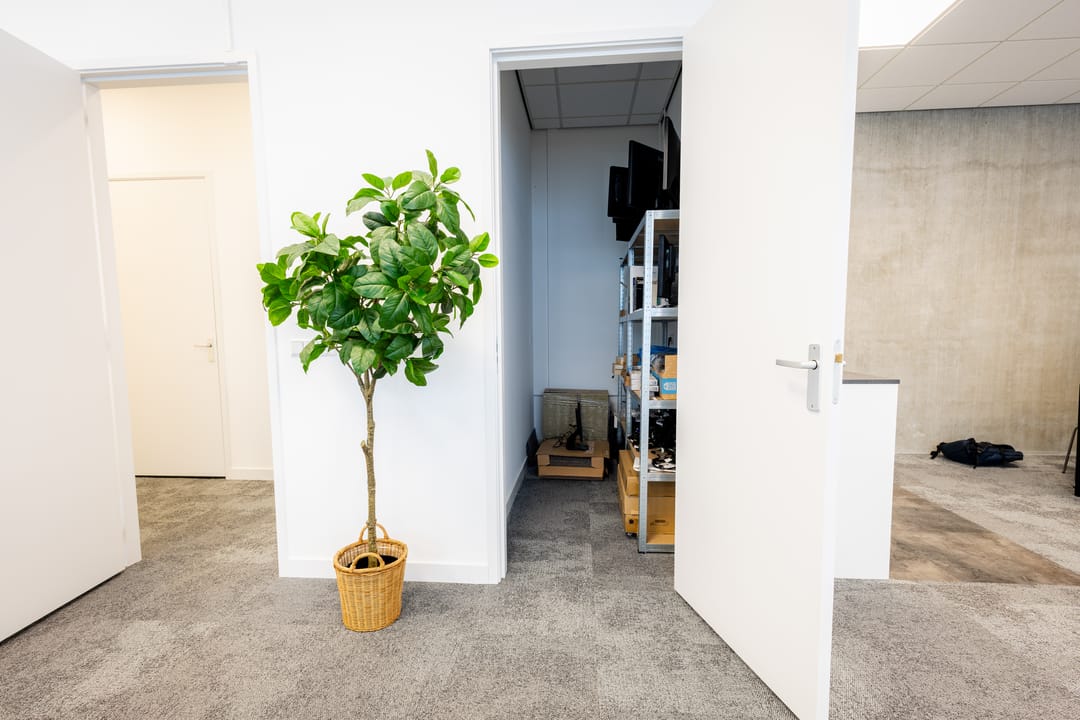 - Scheidingswanden met handige kasten in kantoorruimte en hal