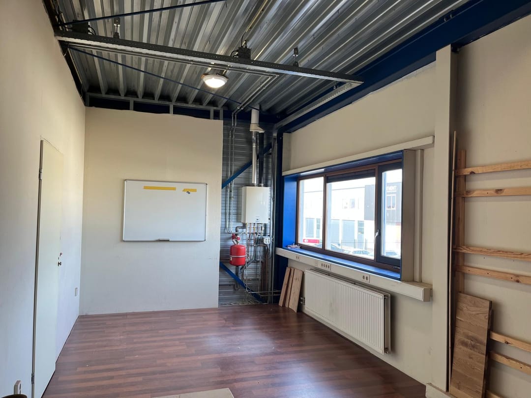 De verdieping heeft eveneens een oppervlakte van ca. 56 m2 BVO en is verdeeld in meerdere ruimten. Aan de voorzijde bevindt zich een royale open ruimte die uitstekend dienst kan doen als kantoor, showroom of aanvullende werkruimte.