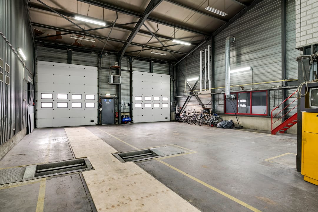 - Overheaddeuren, krachtstroom, betonvloer, heater, airconditioning, inbouwarmaturen en te openen ramen