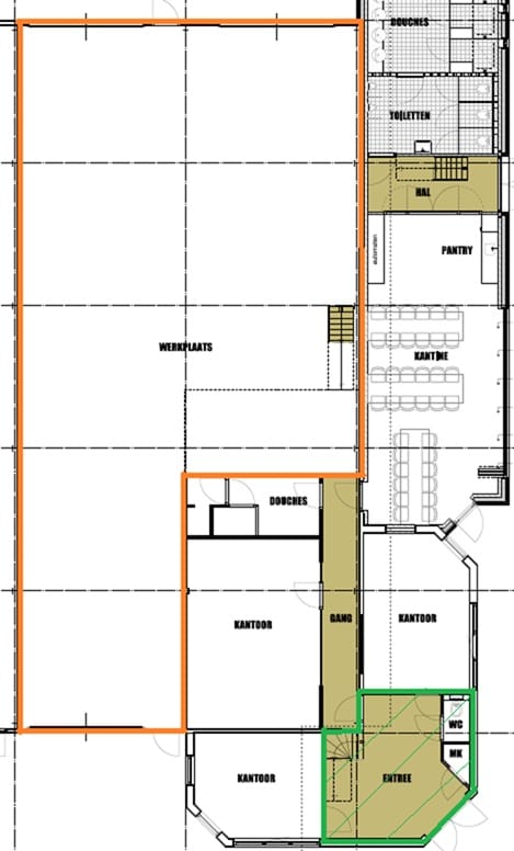 - Bedrijfsruimte begane grond: € 1.400,- per maand, te vermeerderen met btw en exclusief gas, water en elektra.