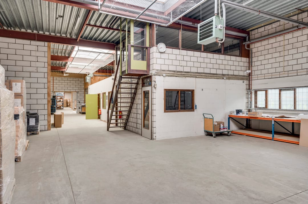 In de derde bedrijfsruimte (ca. 479,45 m²) is een kleine expeditie gerealiseerd, afgewerkt met een systeemplafond, verdeelkast en opslag op de verdieping.