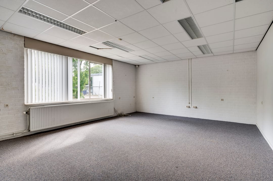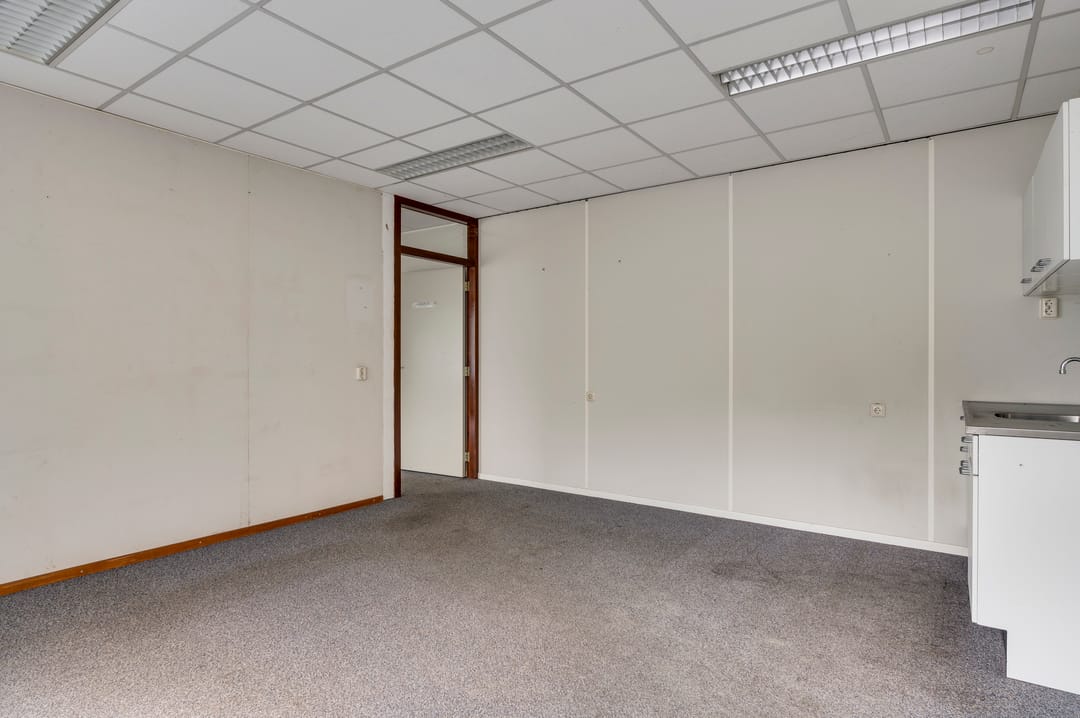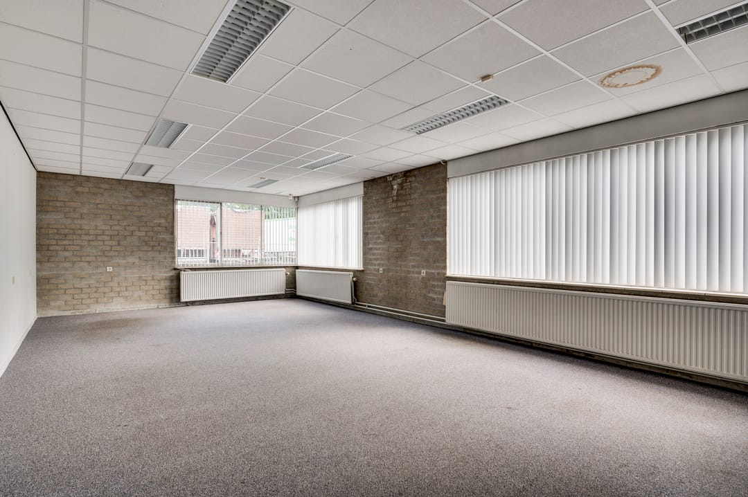 De kantoren zijn gelegen aan de voorzijde van het pand. Aan de rechterzijde van de hal is een ruim opgezet kantoor gelegen, voorzien van baliefunctie, vloerbedekking, MBI-steen wanden, radiatoren, systeemplafond met LED-armaturen en royale raampartij voor de nodige daglichttoetreding in de ruimte.